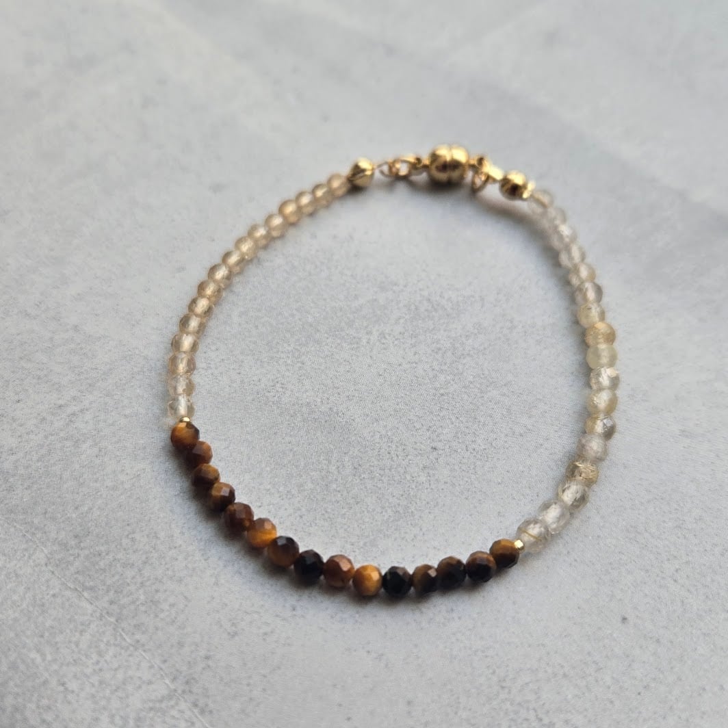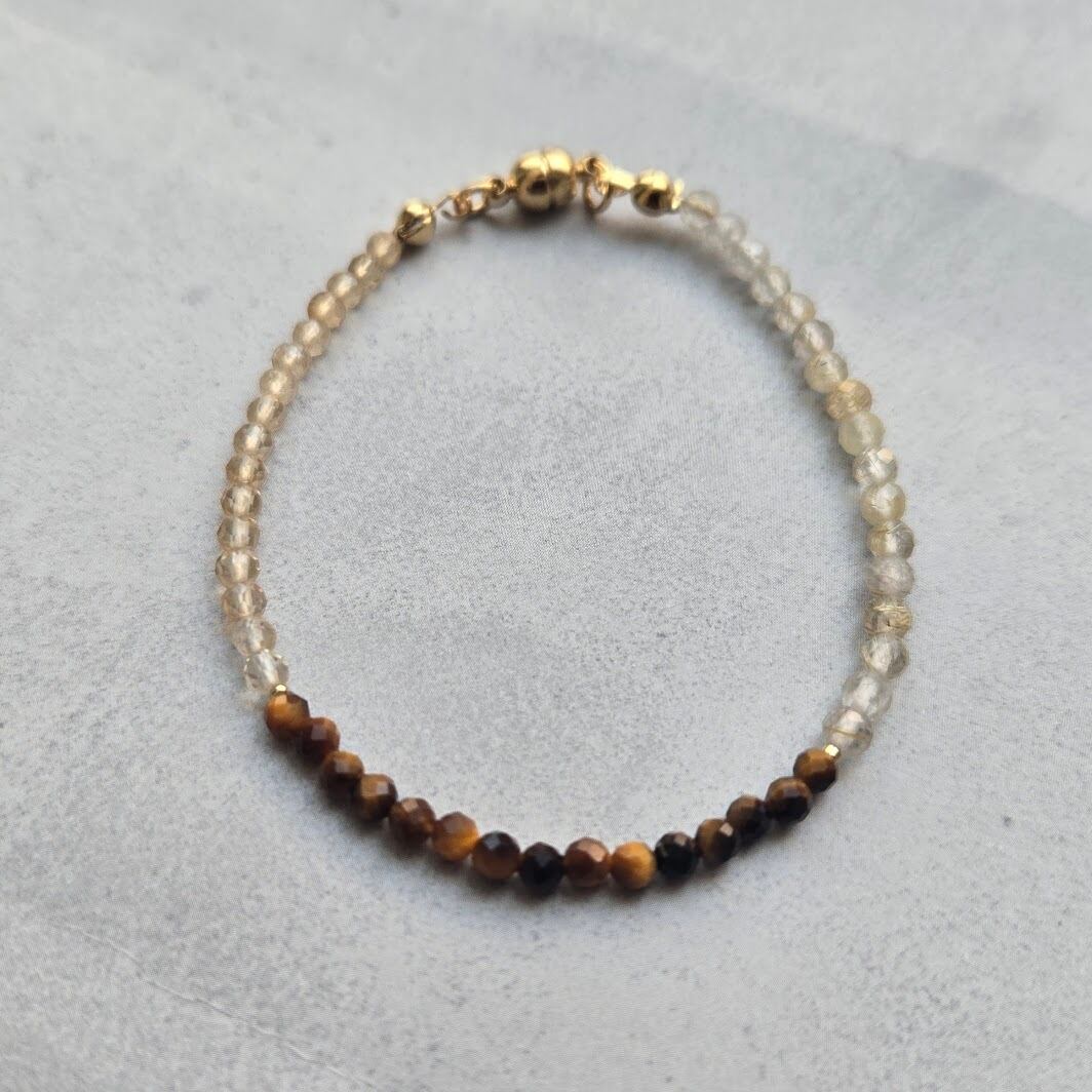 とにかく金運を追い求める人のために。 金運を引き寄せるパワーストーン全部のせの1本です。 気持ちはやけくそ、でも石選びは本気。 笑えて、ちょっと救われる。 あなたの気持ちにそっと寄り添う、天然石ブレスレット