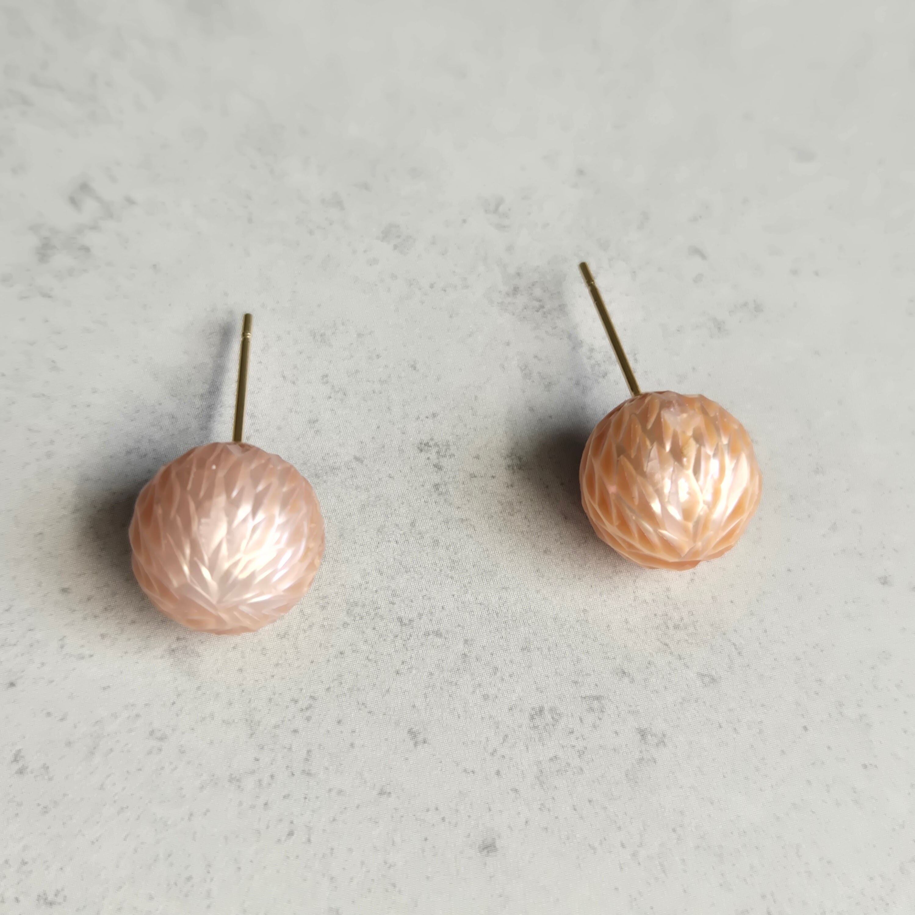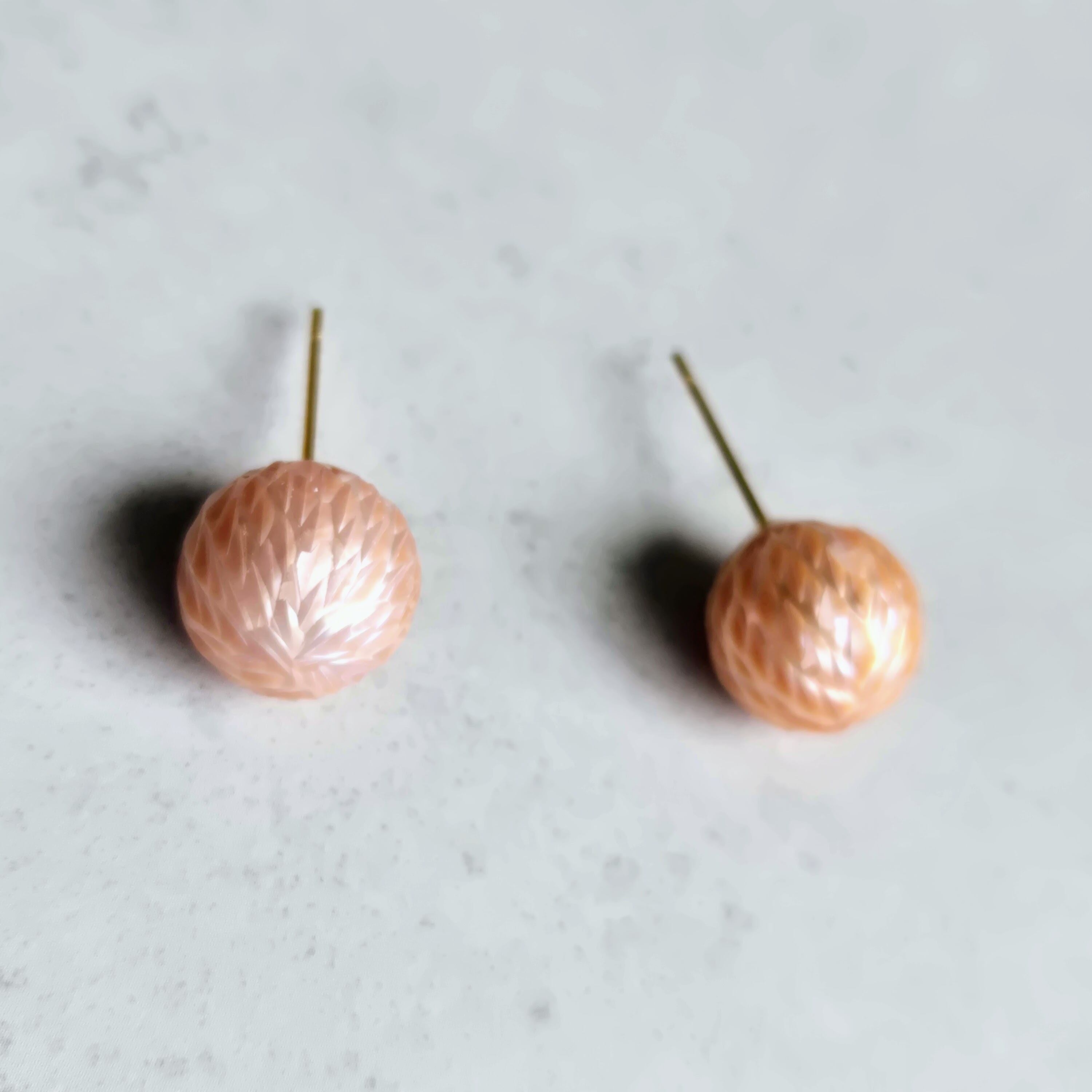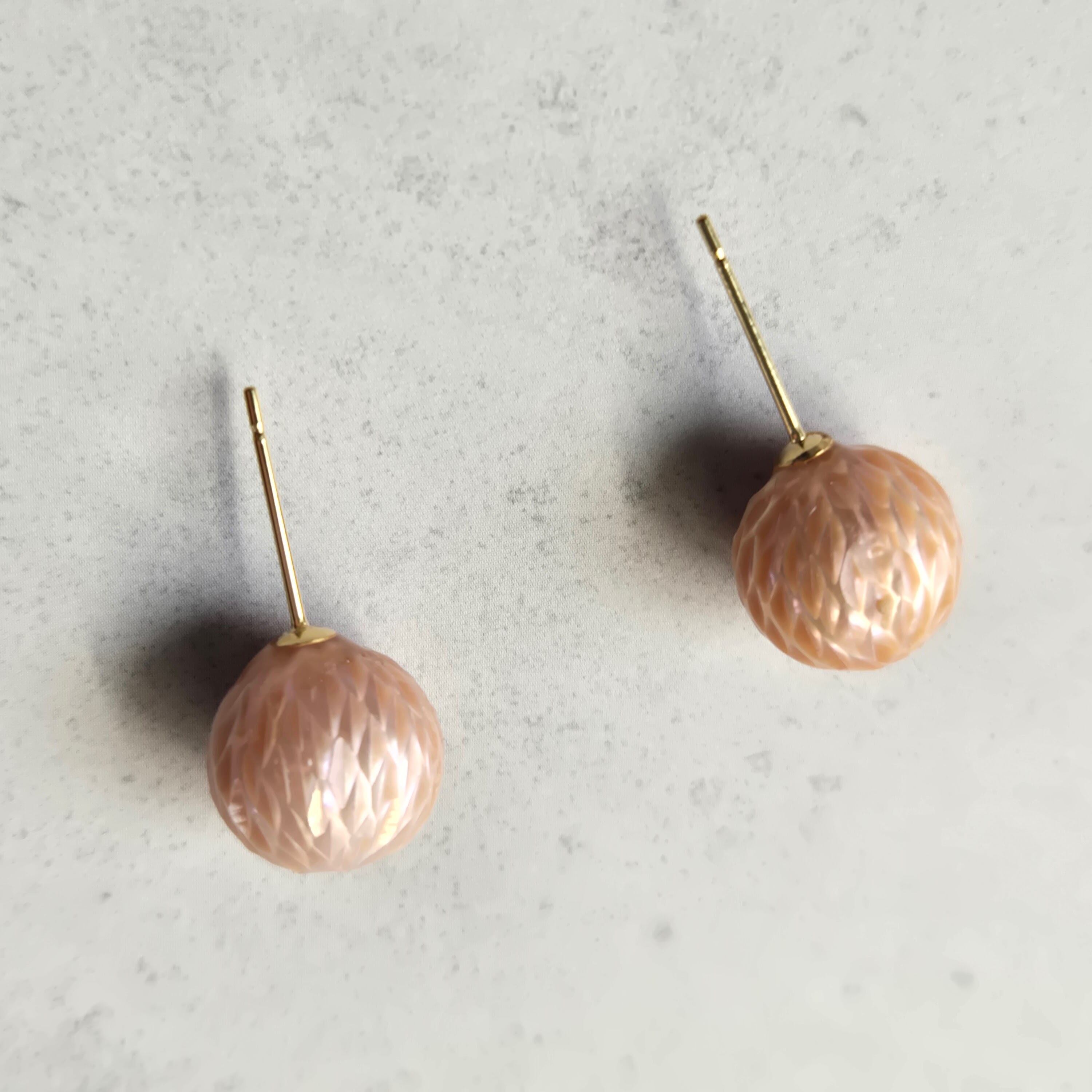 ドラゴンスケアと呼ばれる、個性的な表情をもつ淡水パールの一粒ピアスです。