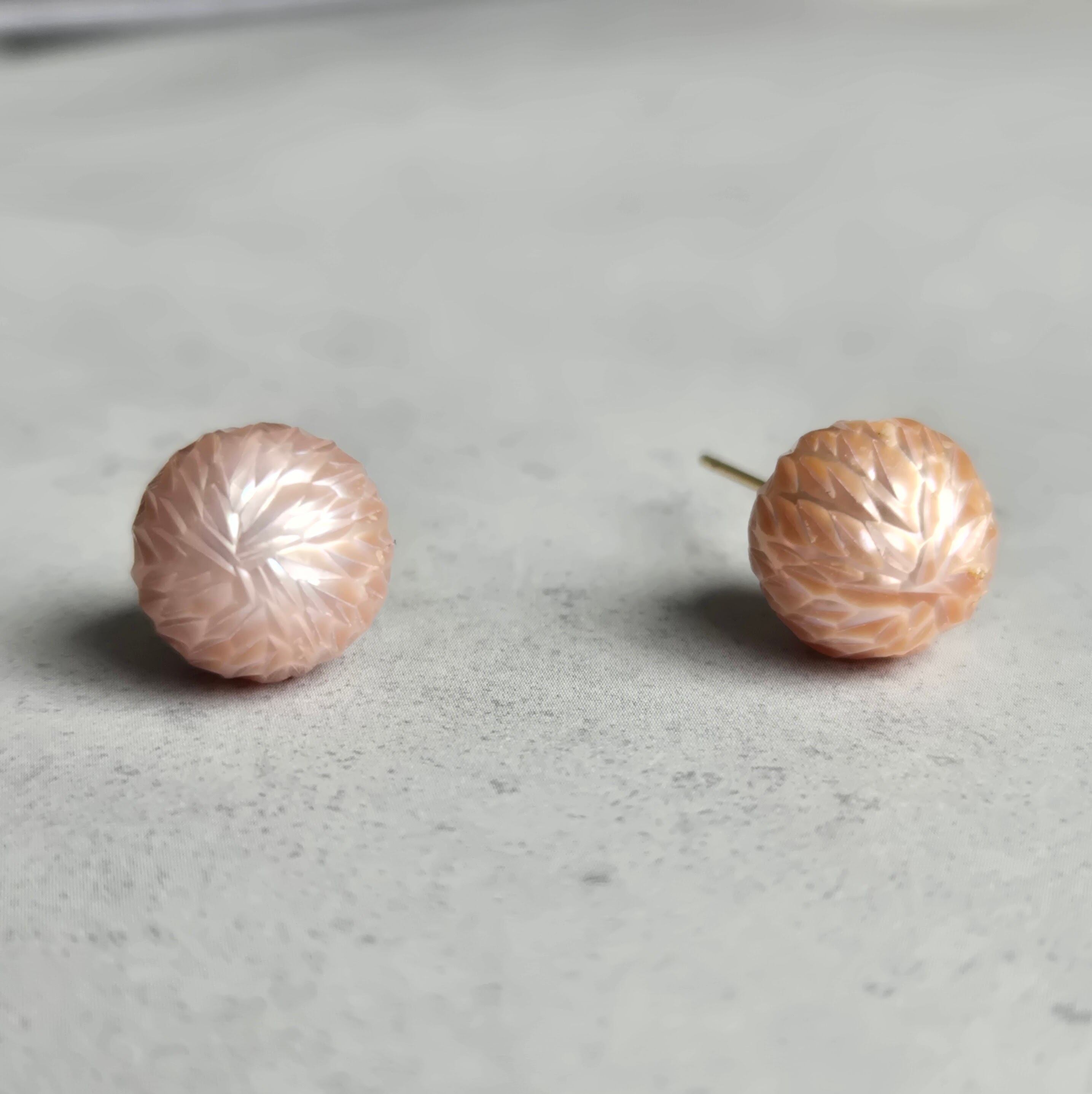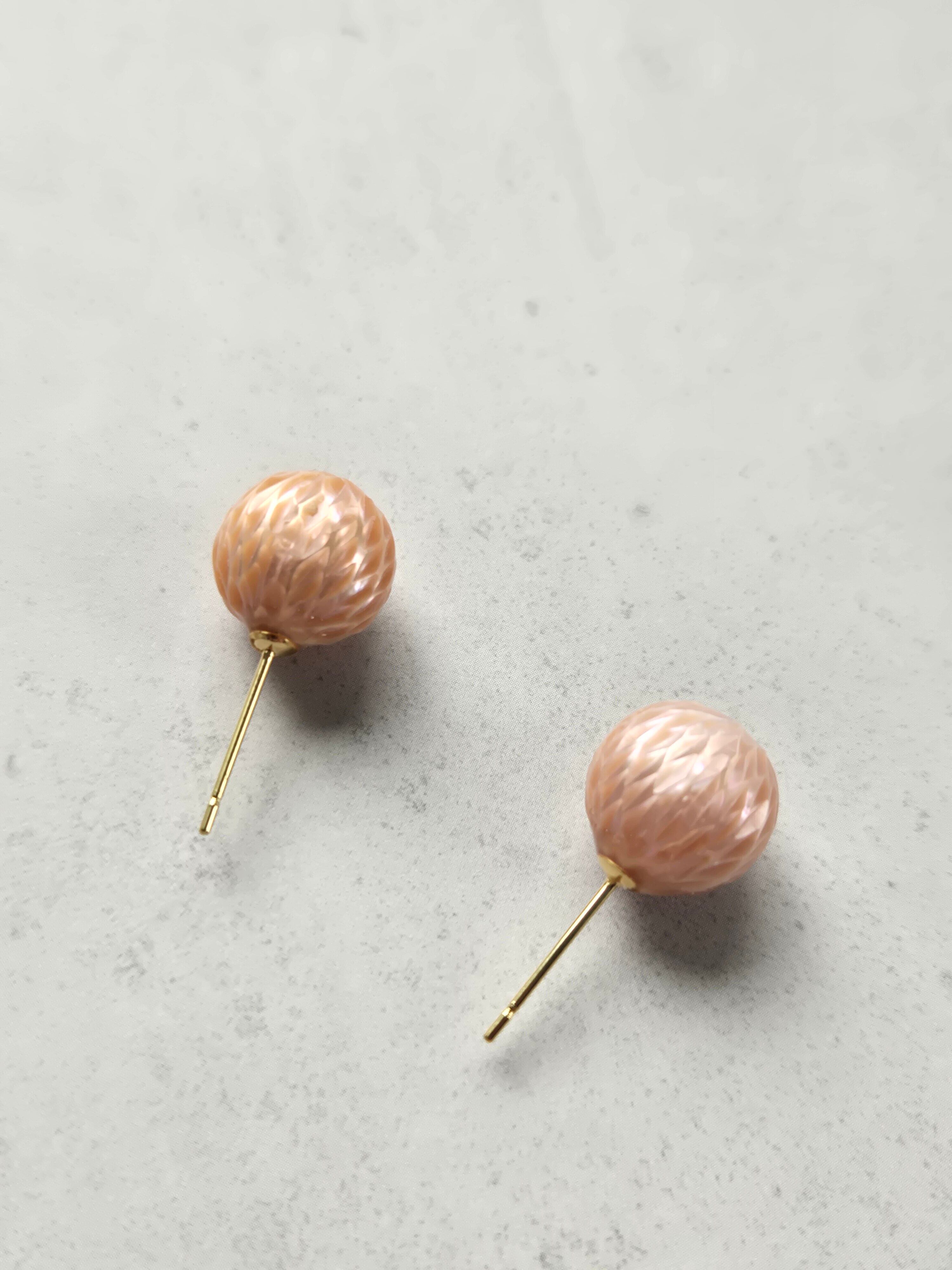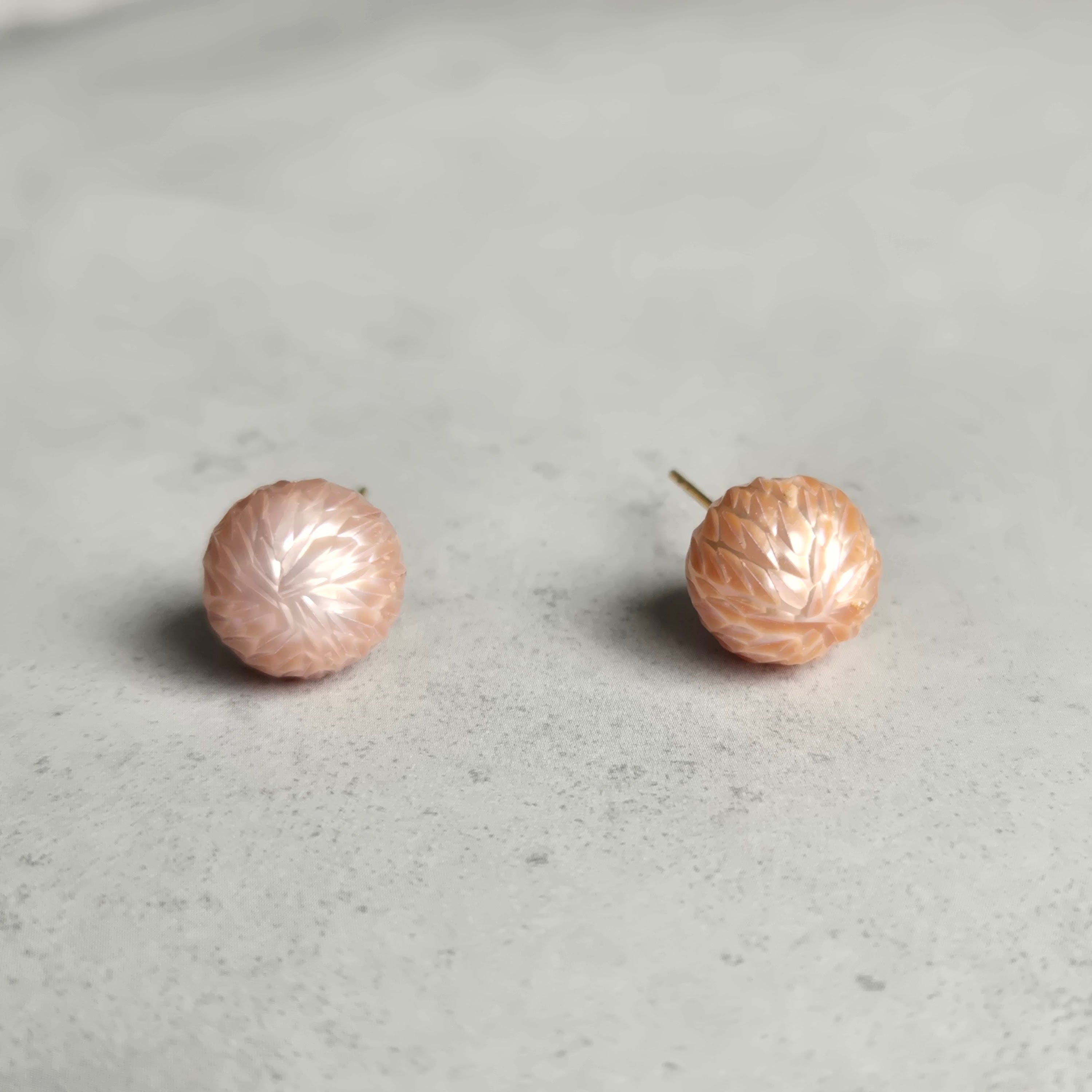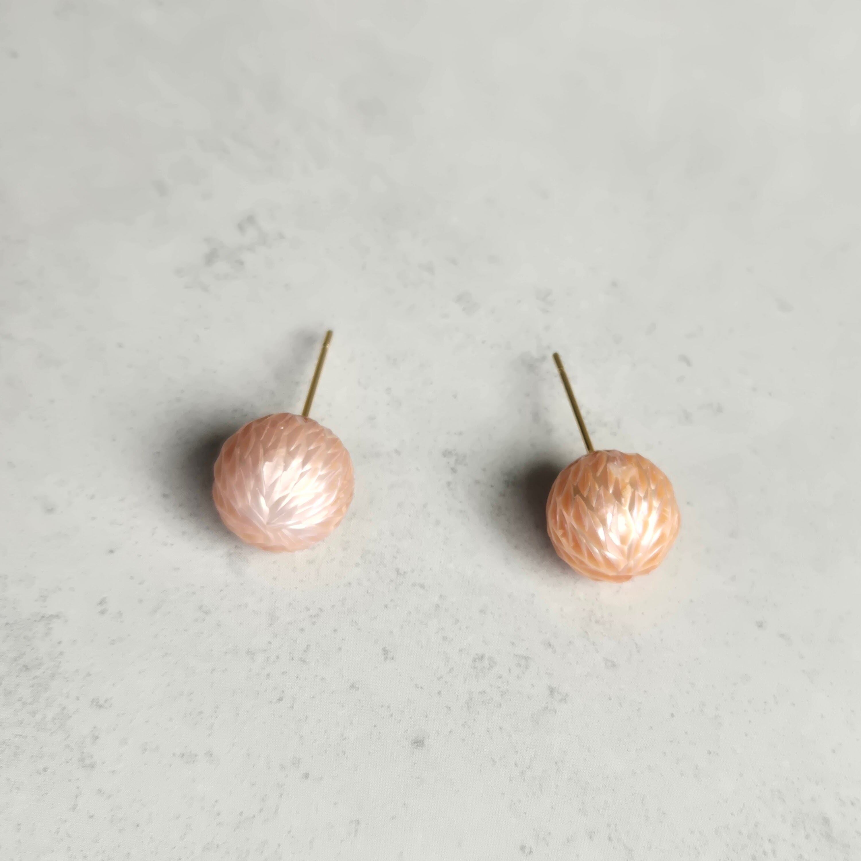 ドラゴンスケアと呼ばれる、個性的な表情をもつ淡水パールの一粒ピアスです。