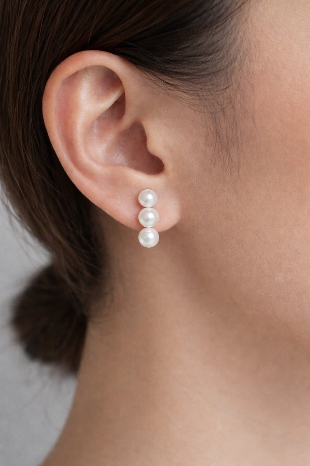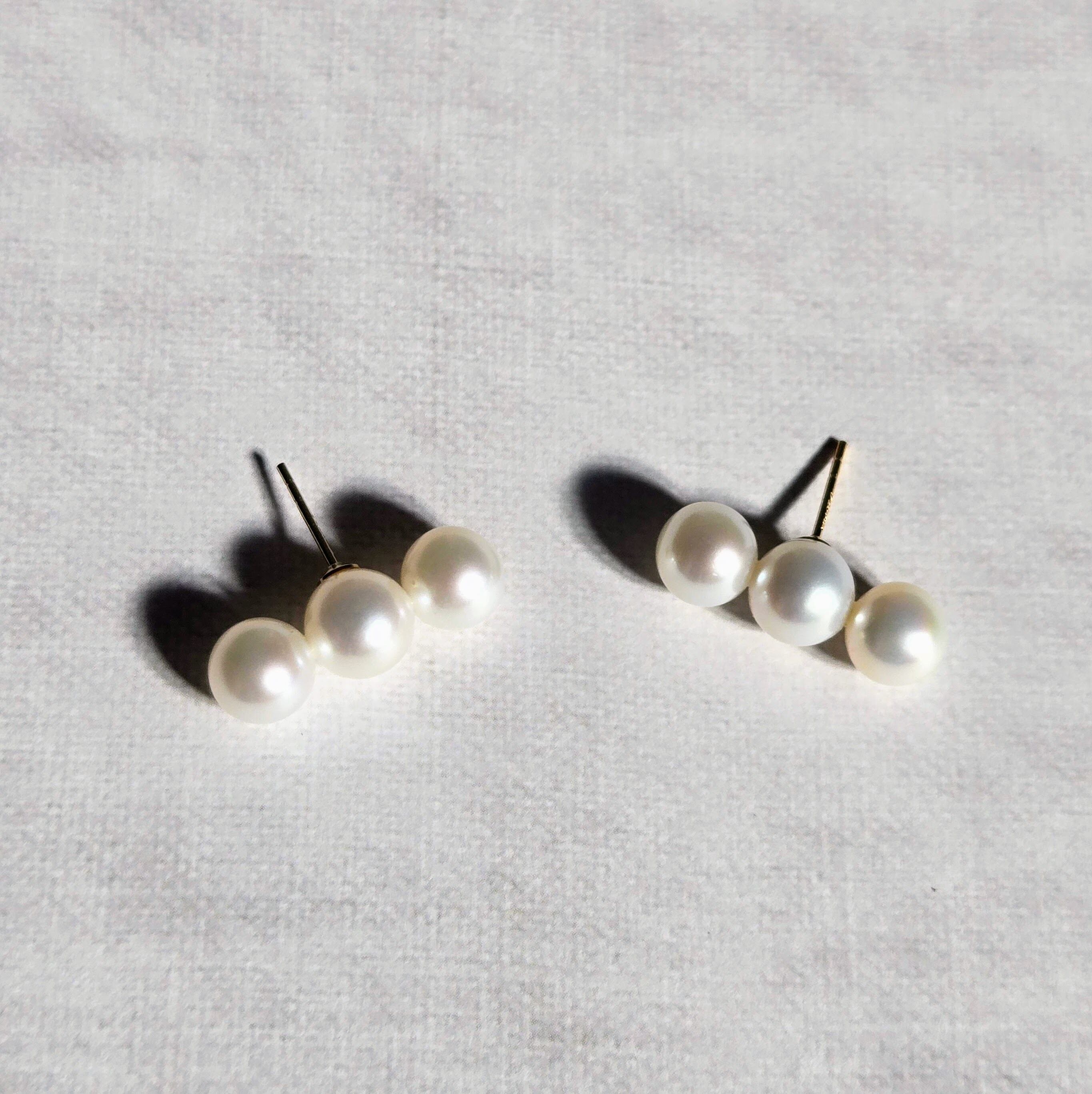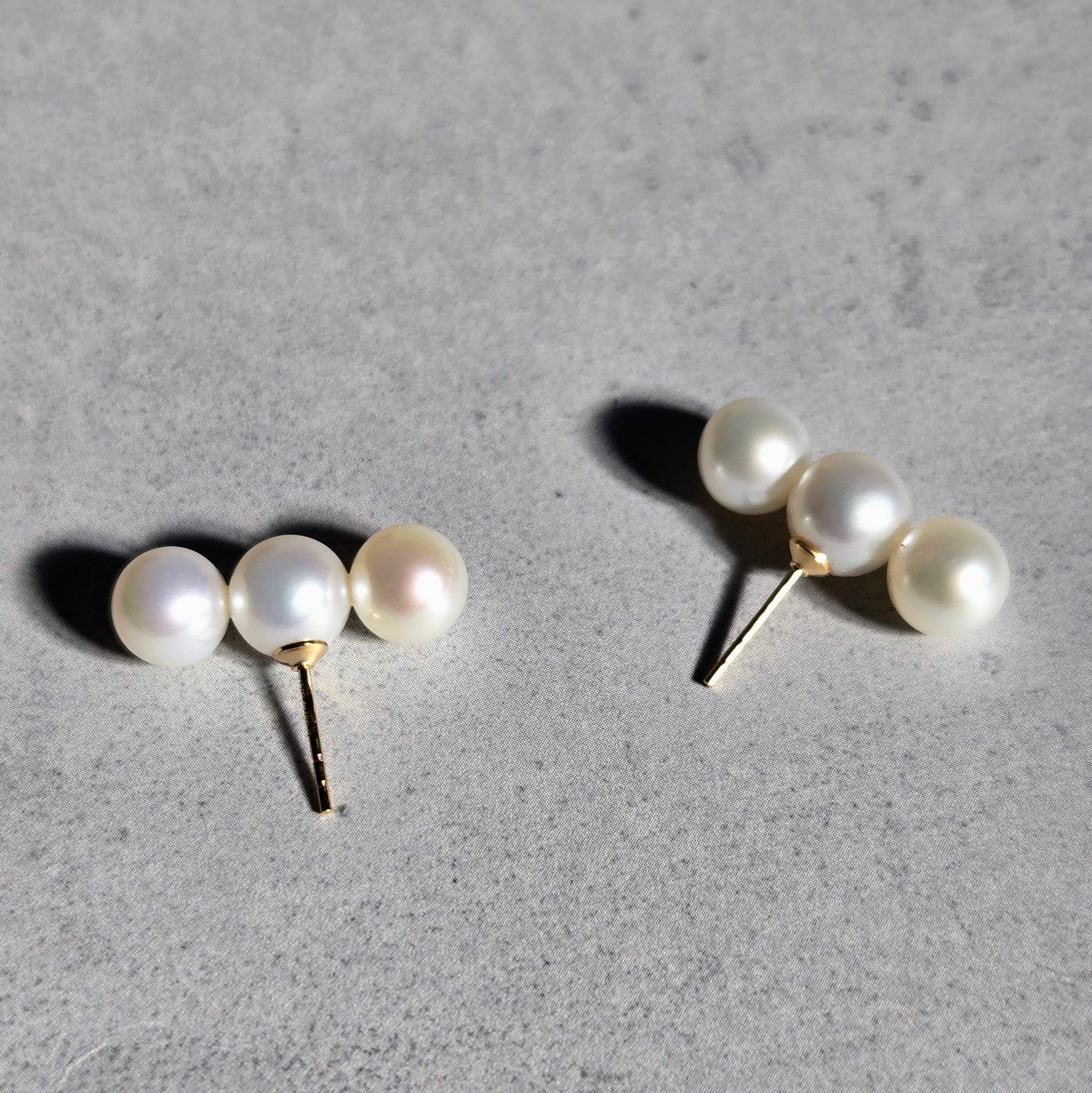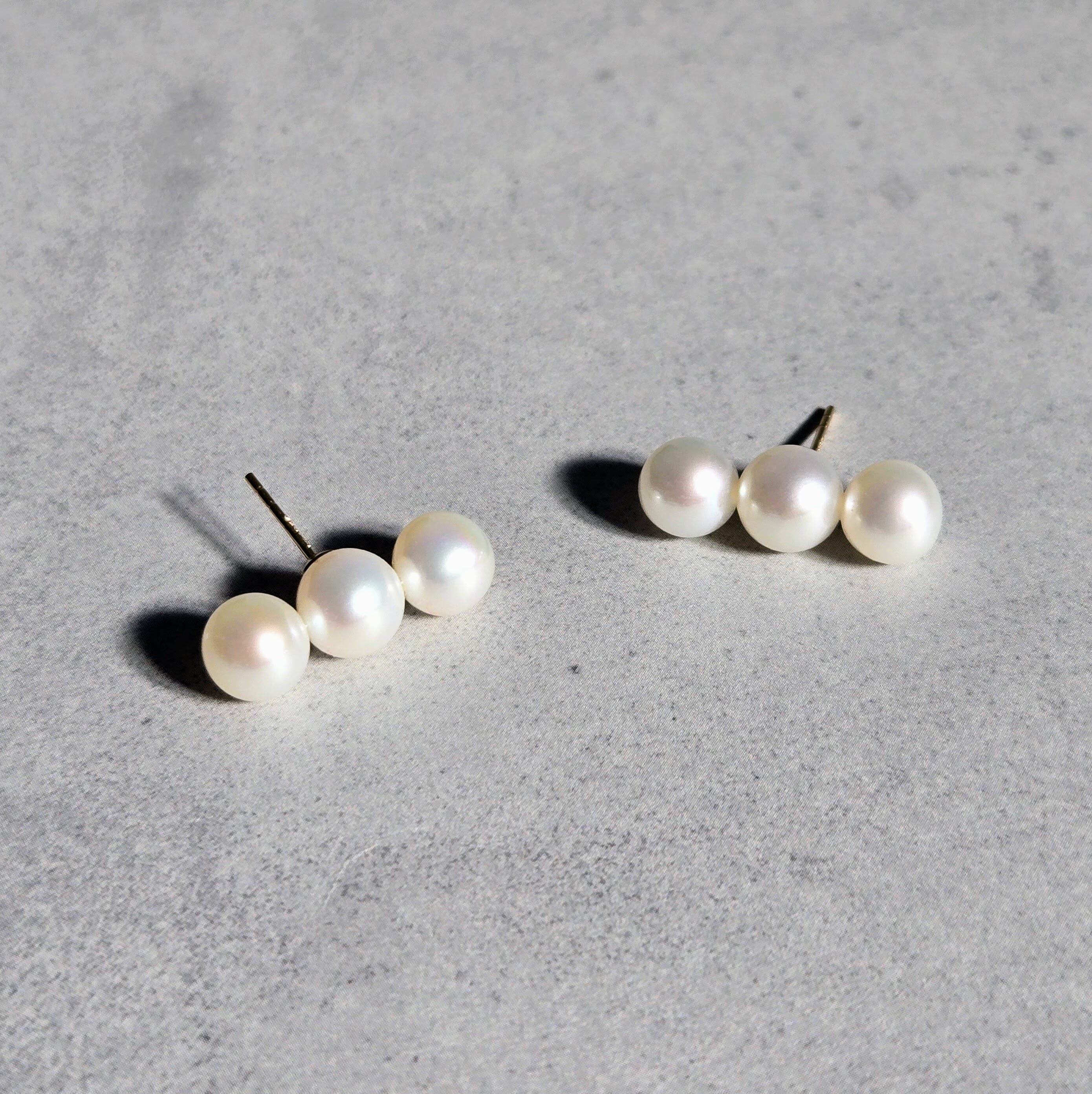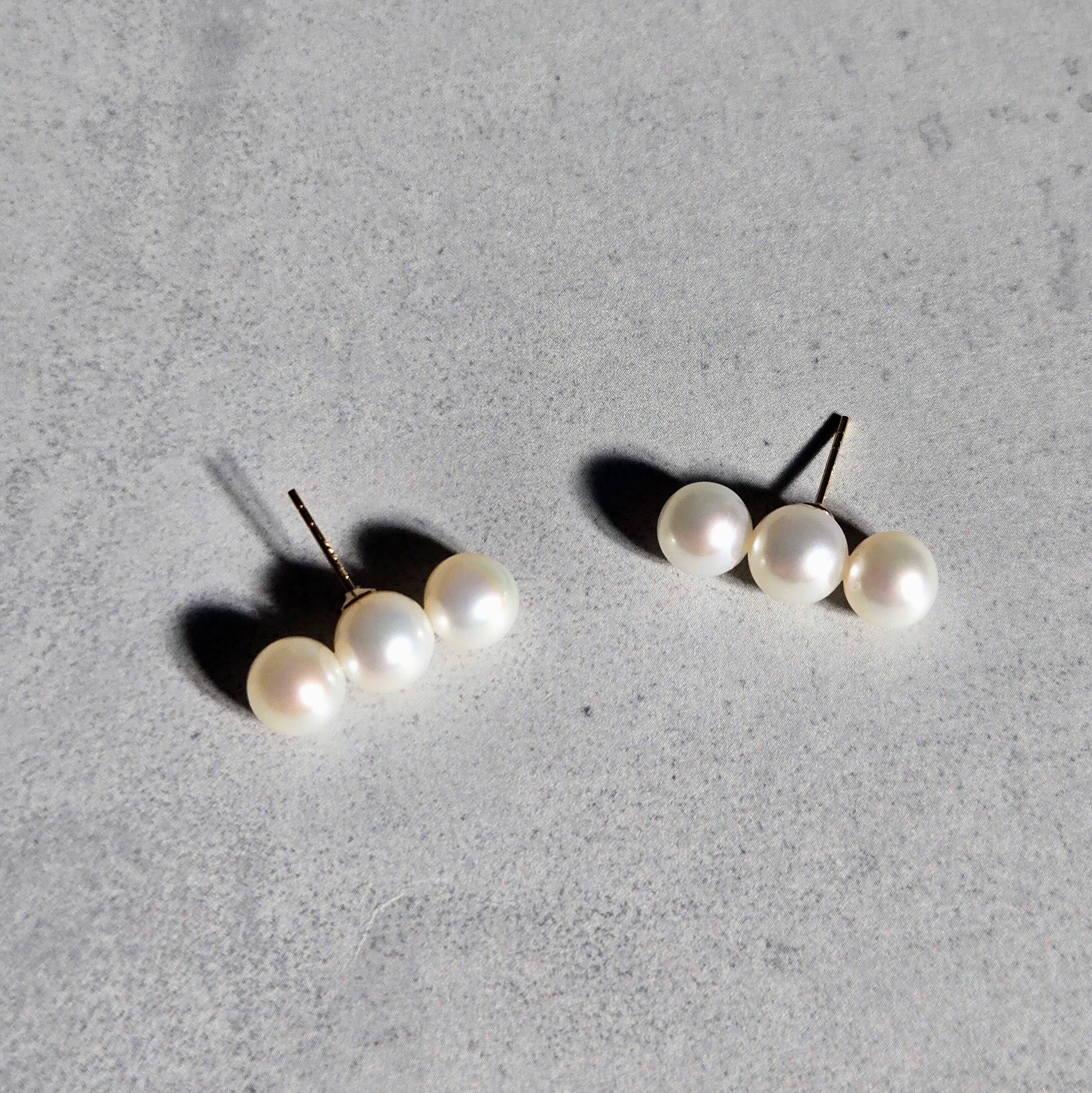 7mmサイズの淡水パールを3粒並べたデザインは、