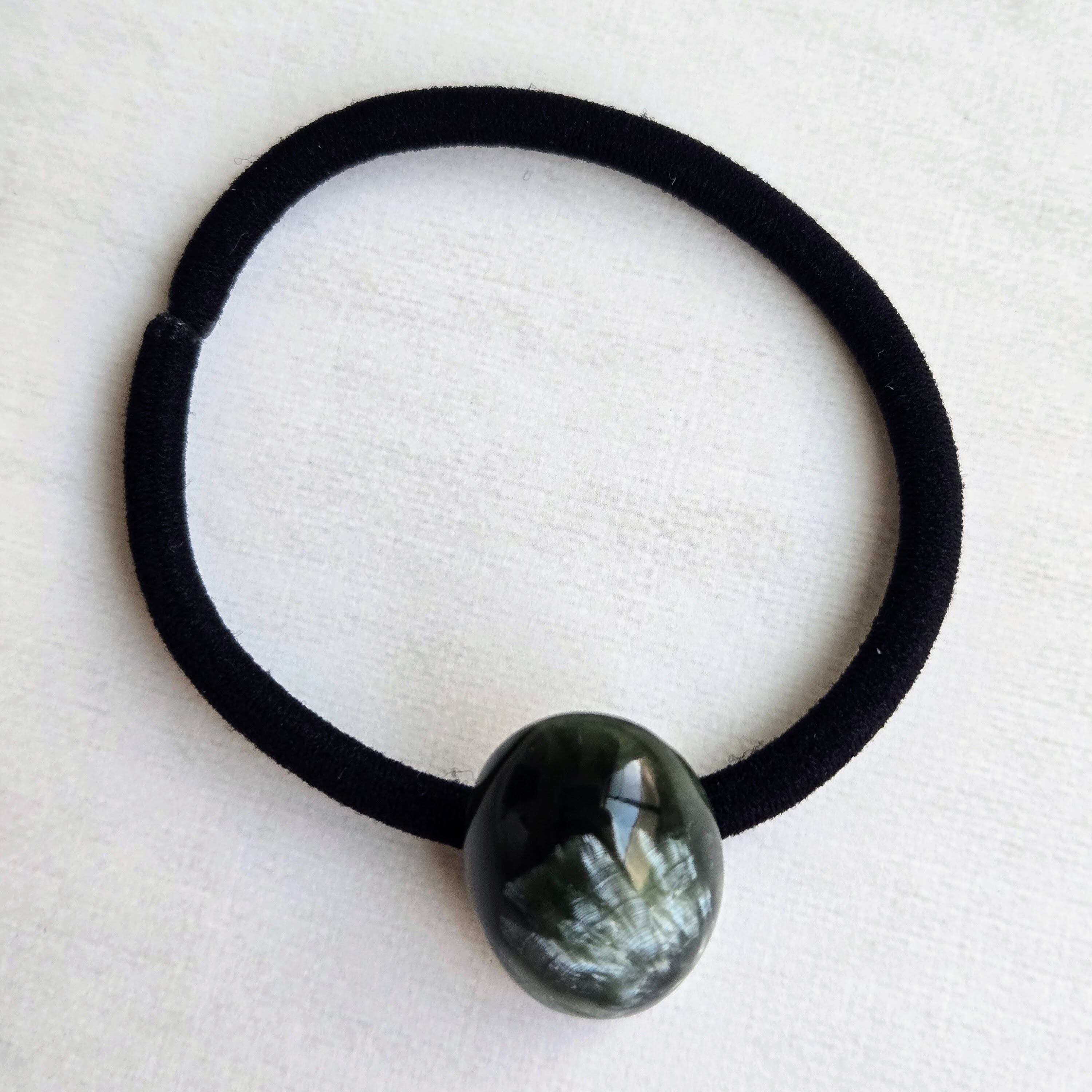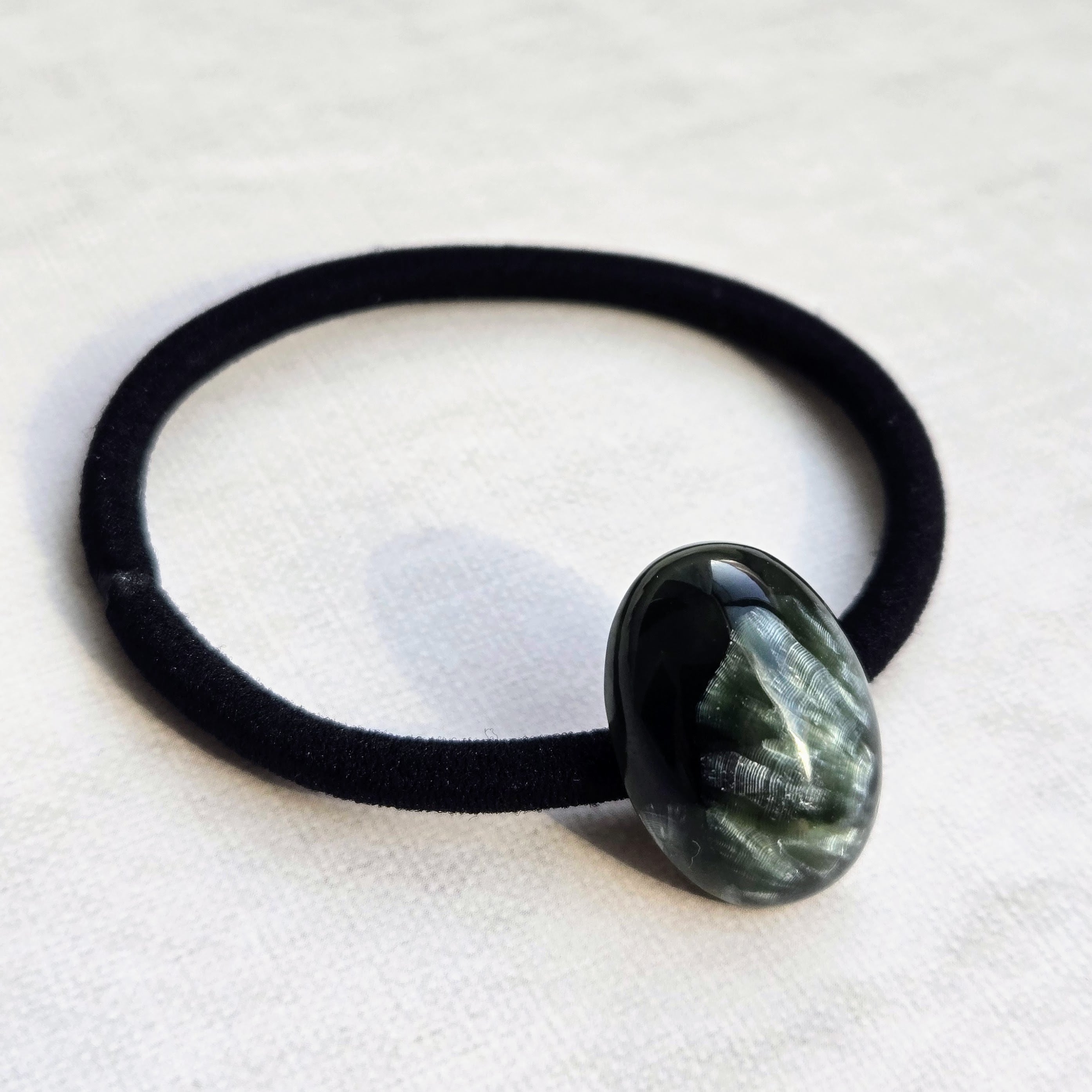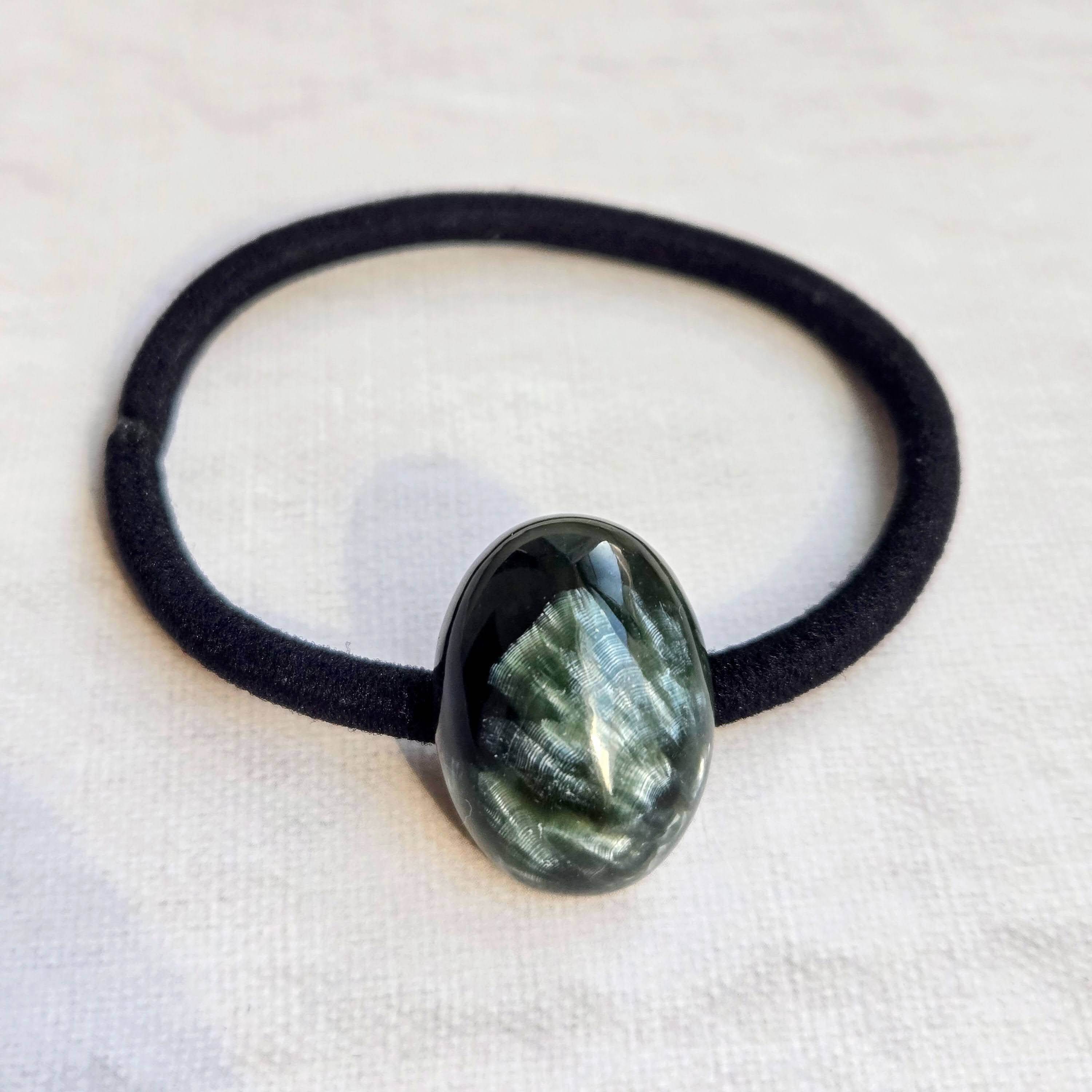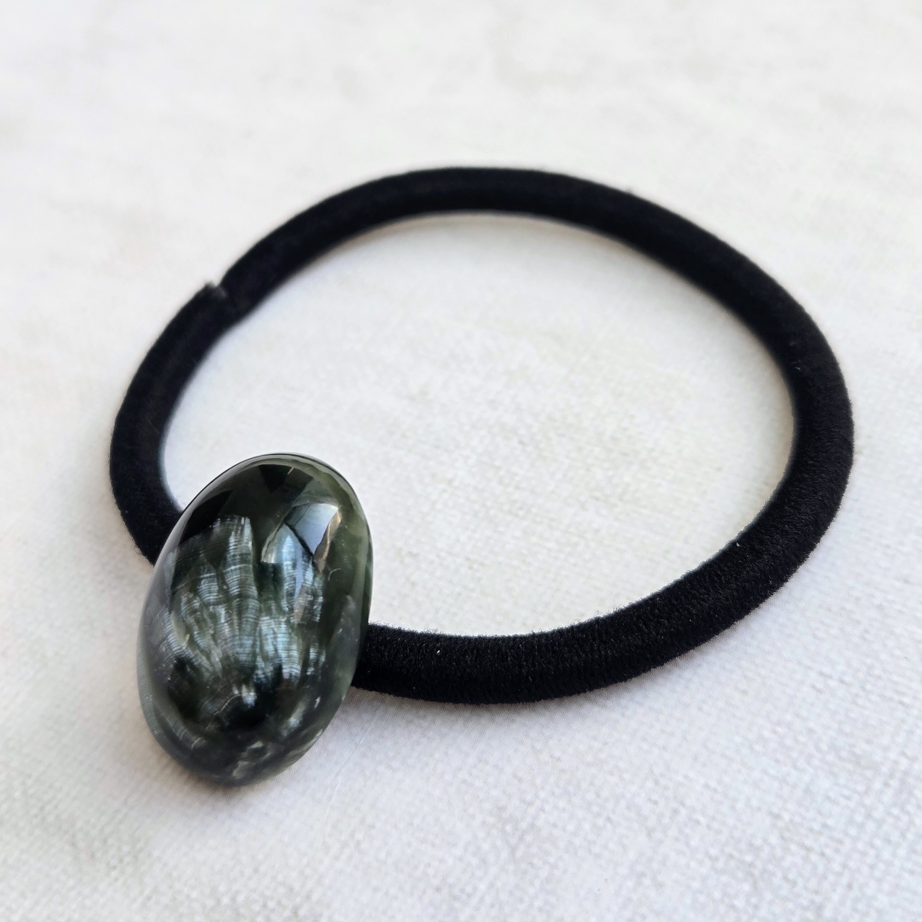 大粒のセラフィナイトを主役にしたヘアゴムです。