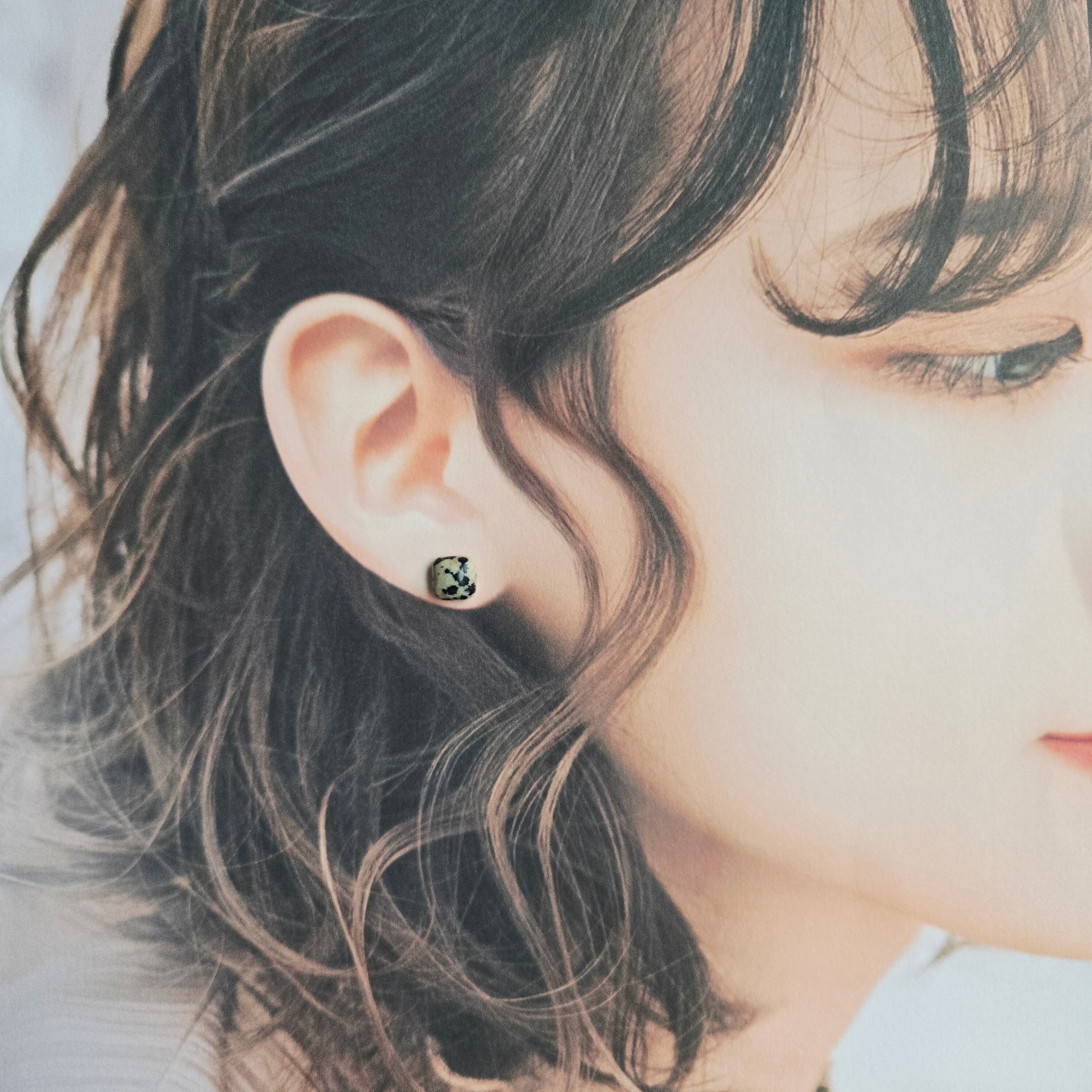 ダルメシアンジャスパーのスクエアピアスです。