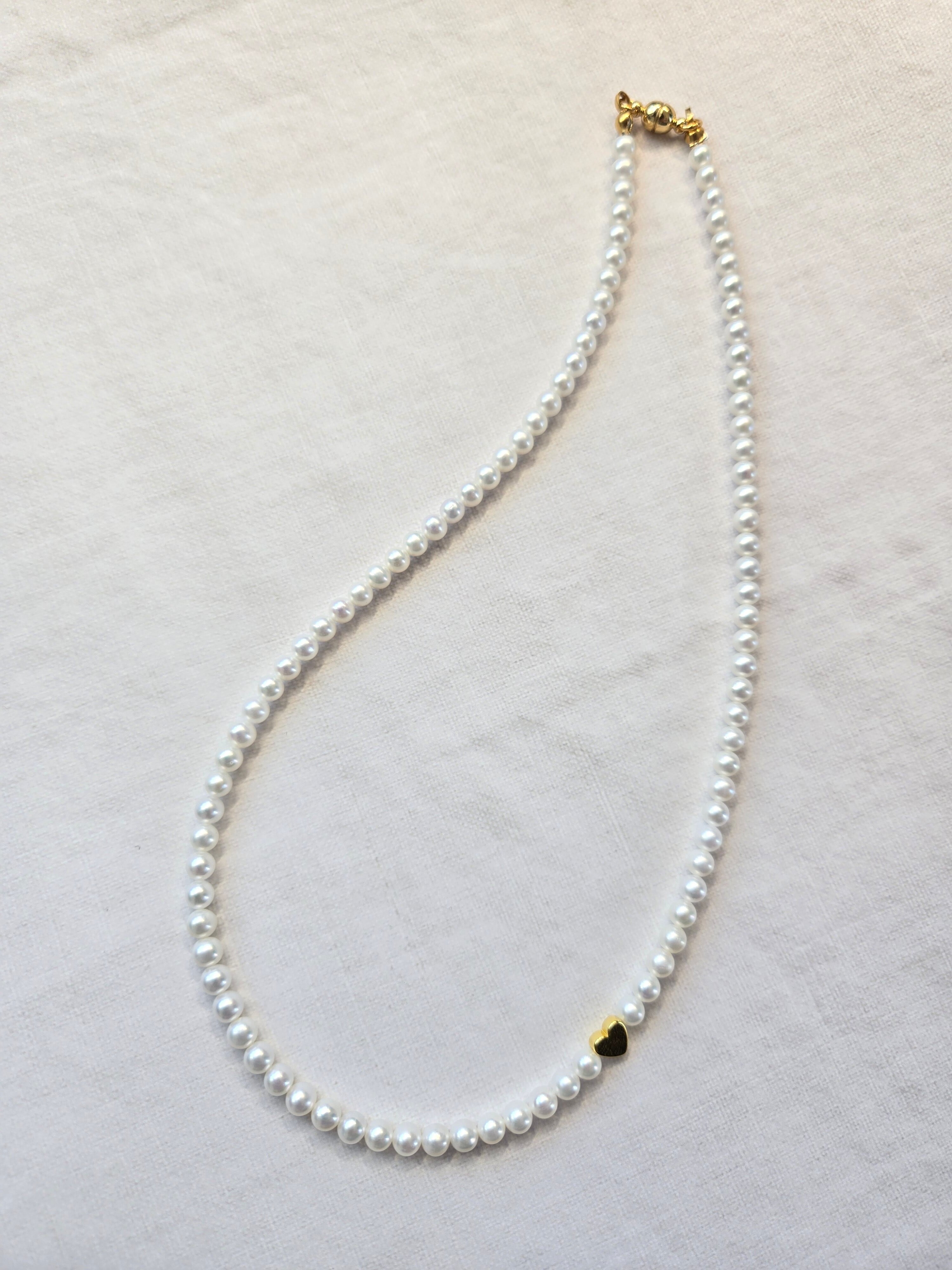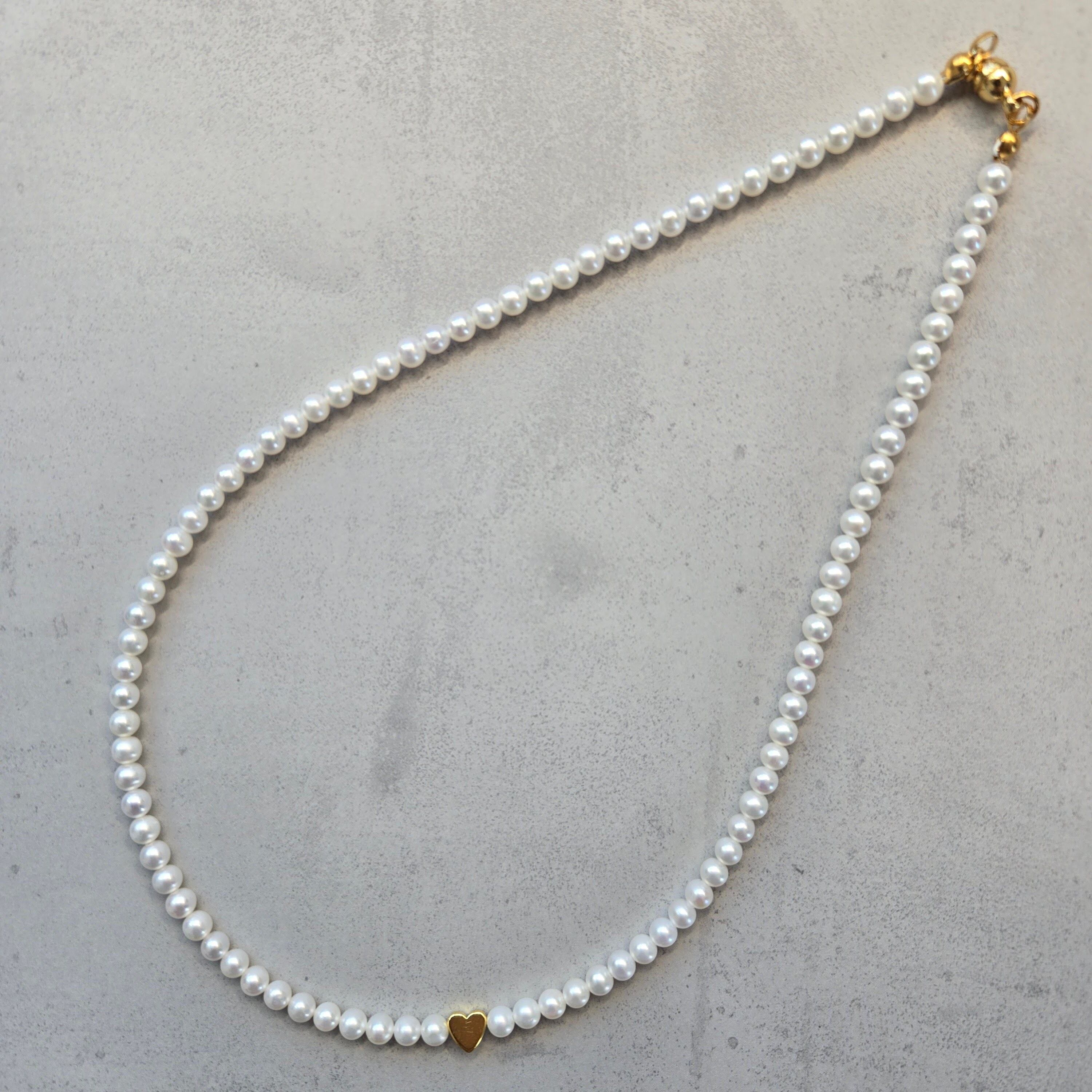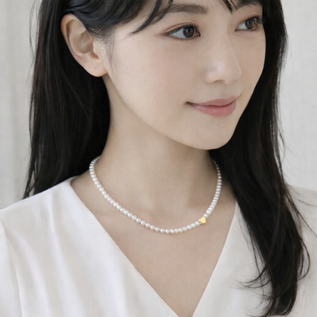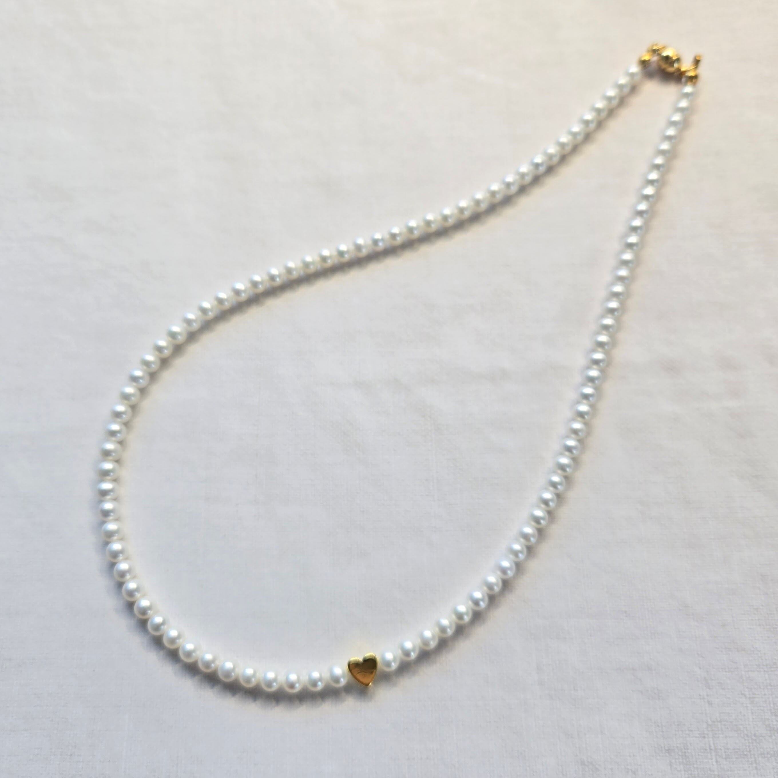 小粒で上品な輝きの 淡水パール(4–4.5mm) を連ねた、シンプルなパールネックレス。