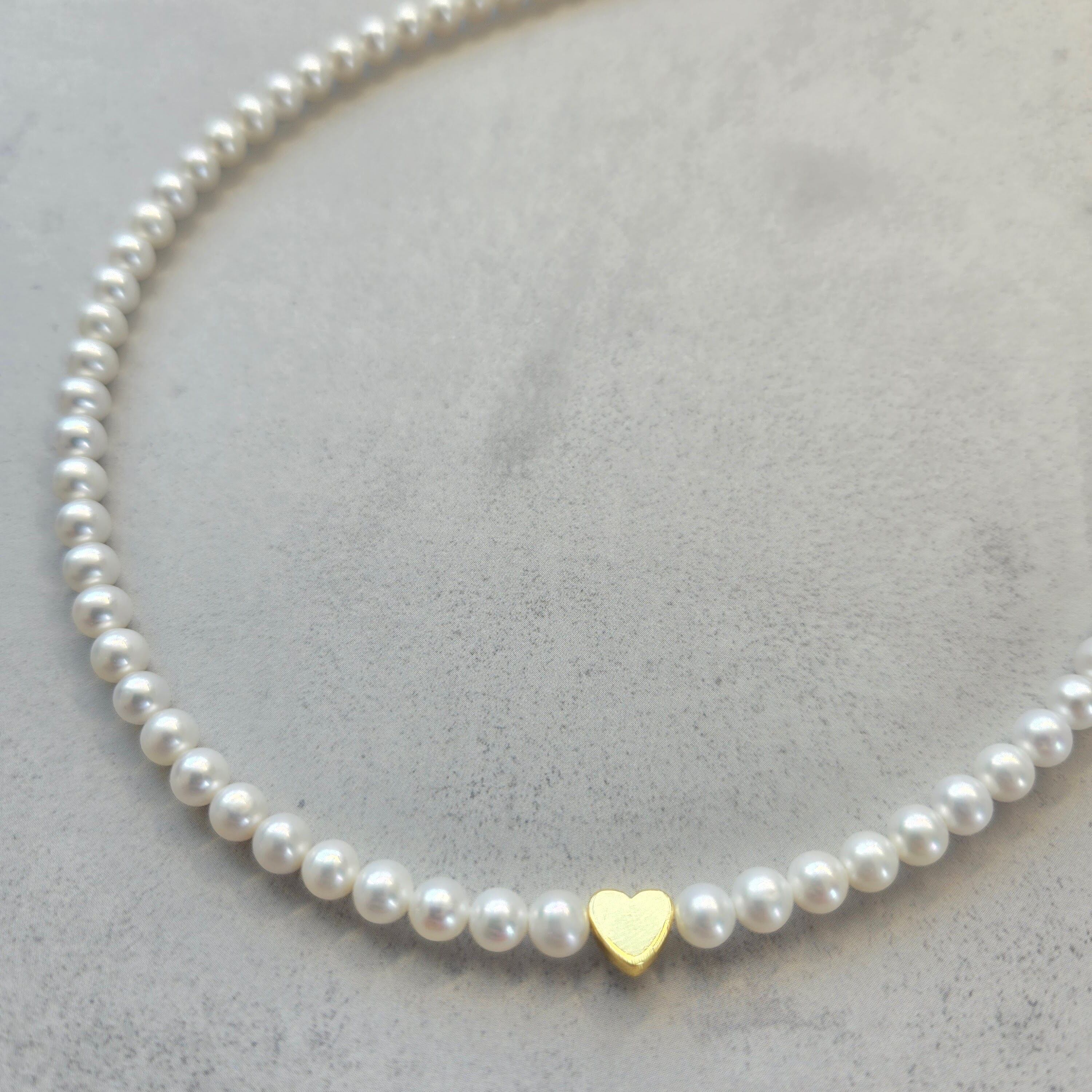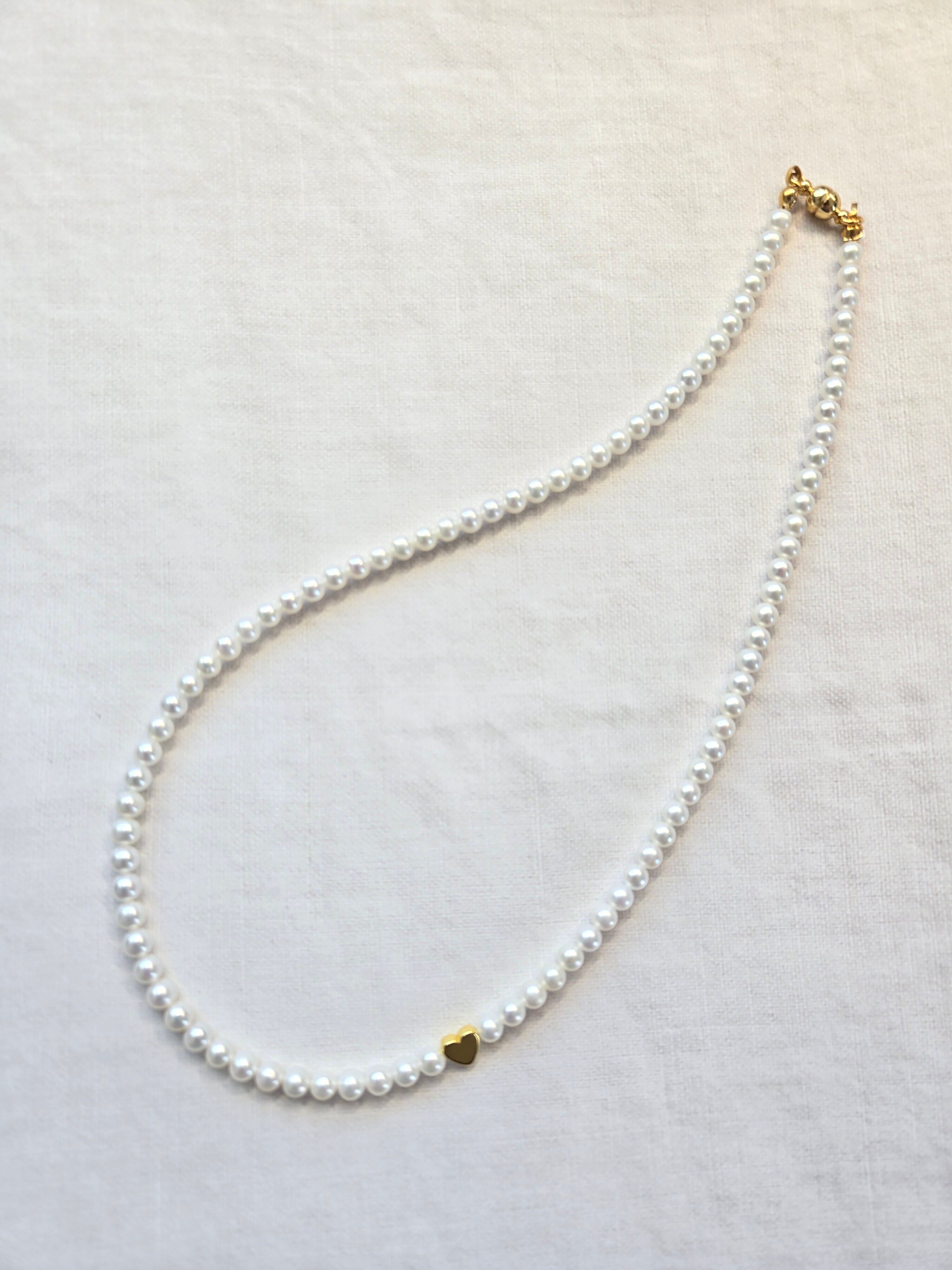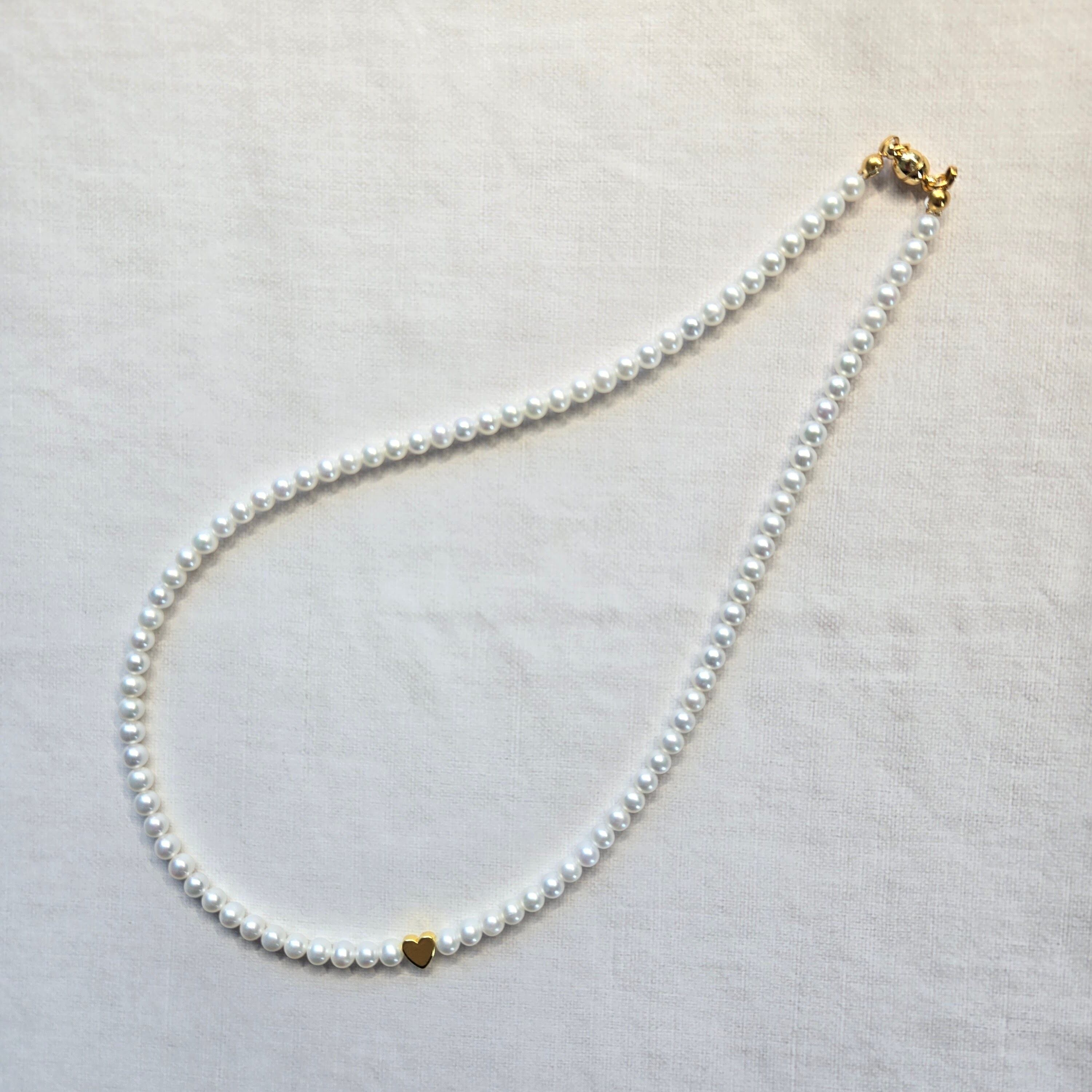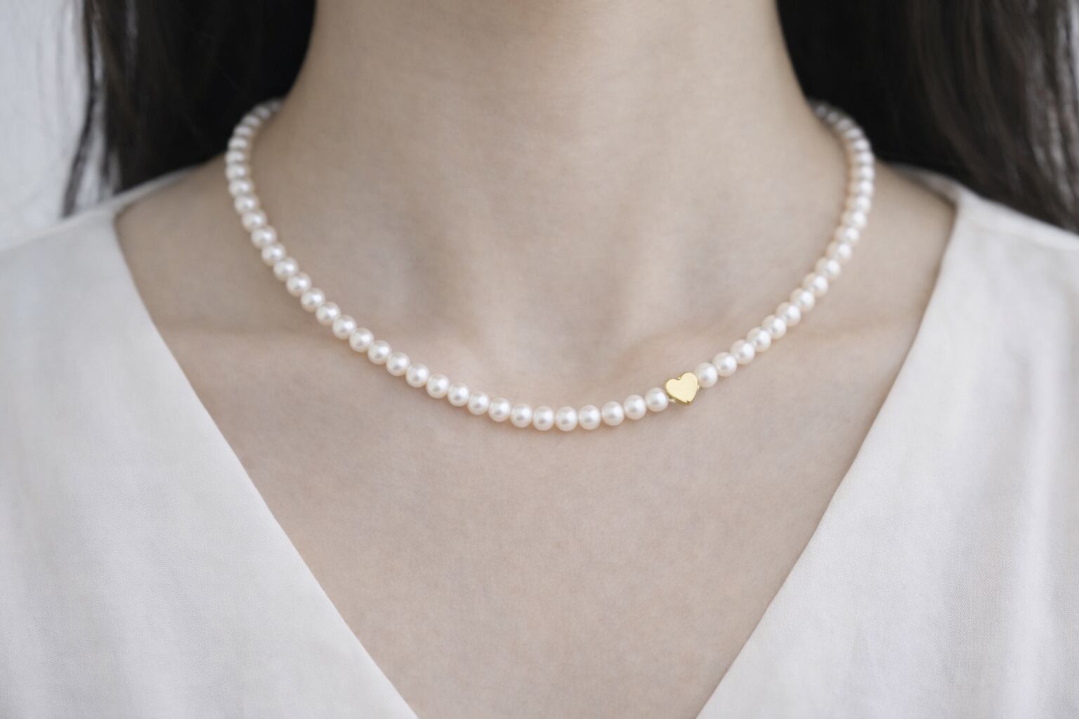 小粒で上品な輝きの 淡水パール(4–4.5mm) を連ねた、シンプルなパールネックレス。