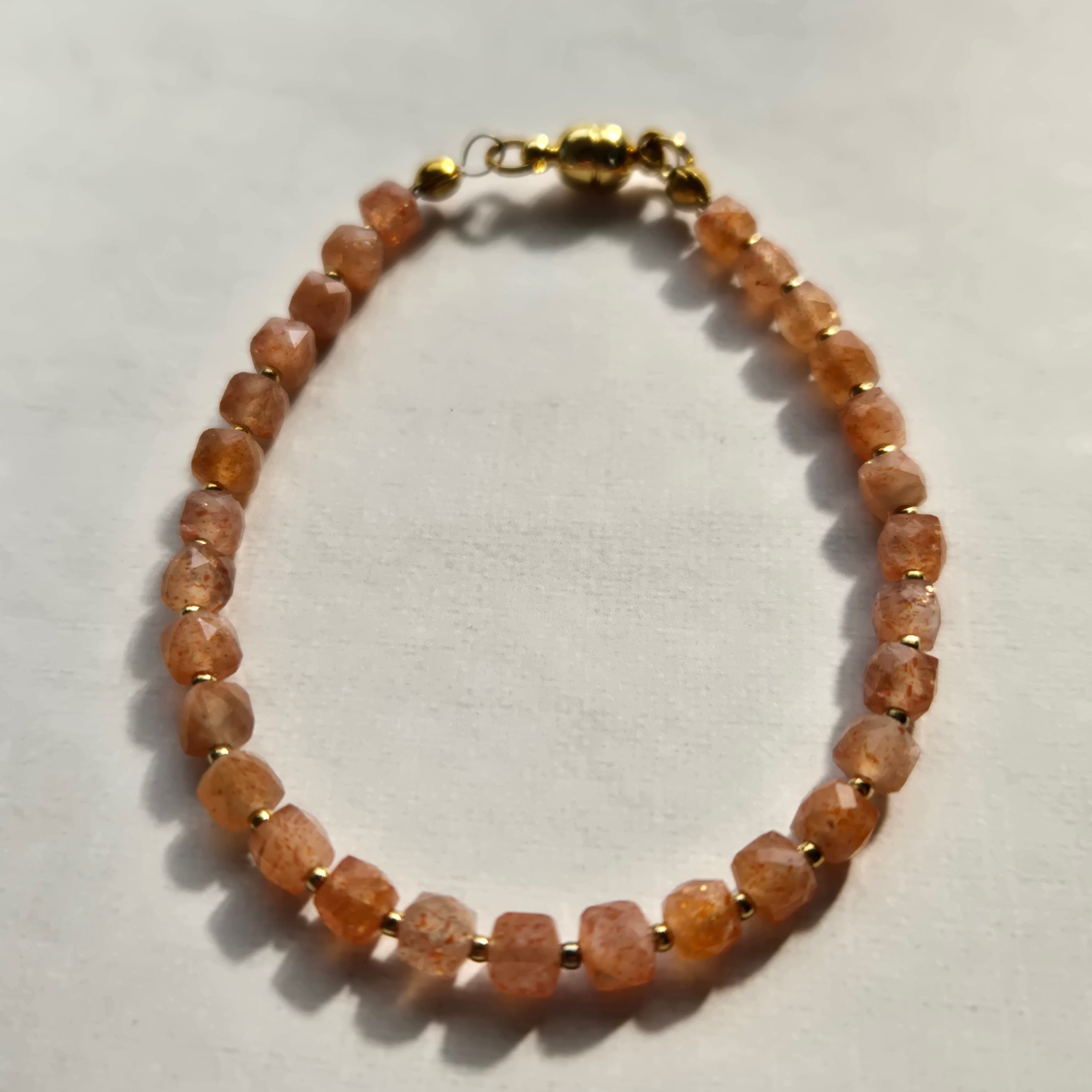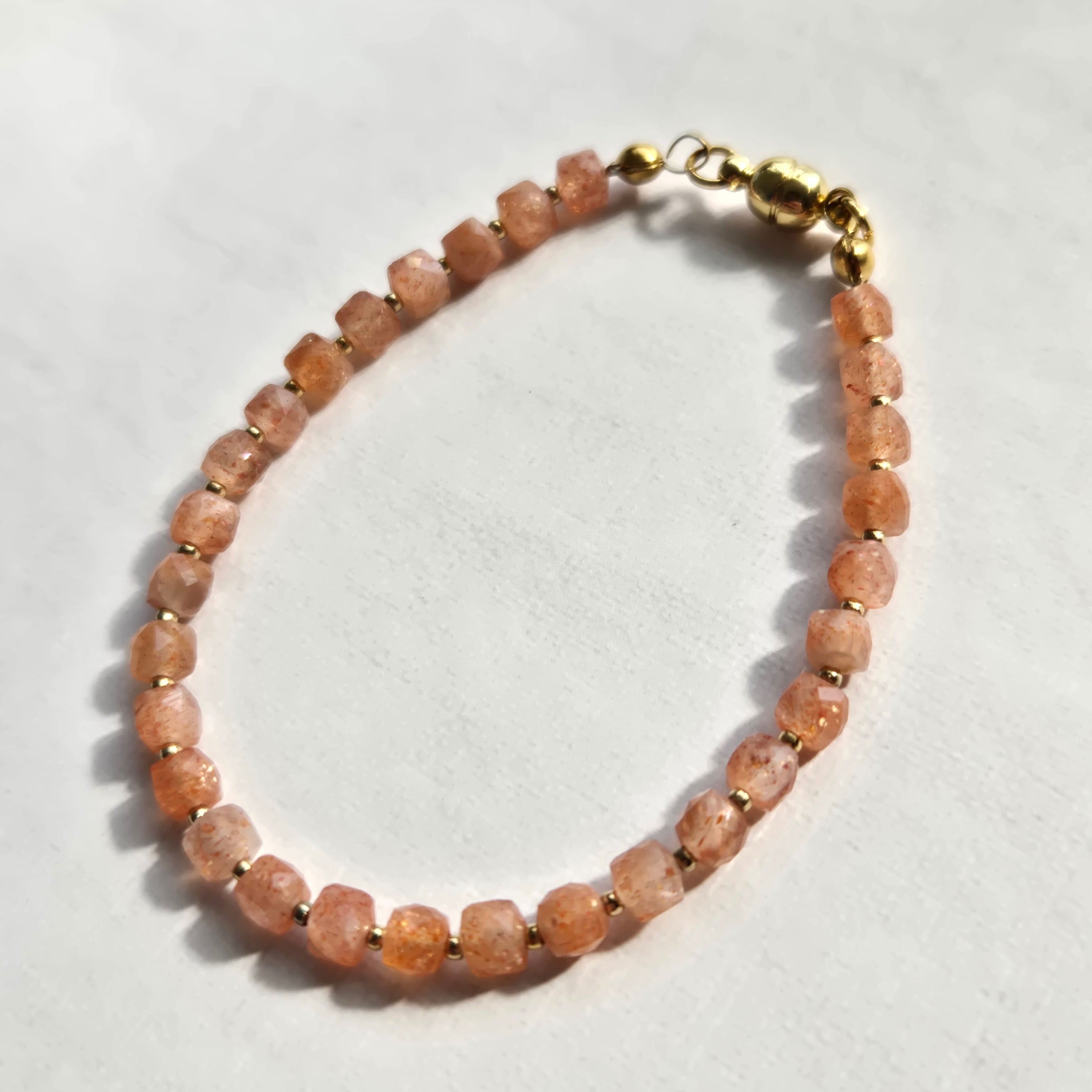 古代ギリシャの時代から「太陽神の象徴の石」として崇められてきた、サンストーン。 光に当てるとキラキラと光る赤色の内包物が特徴です。 【使用天然石】 サンストーン 全長:約16cm