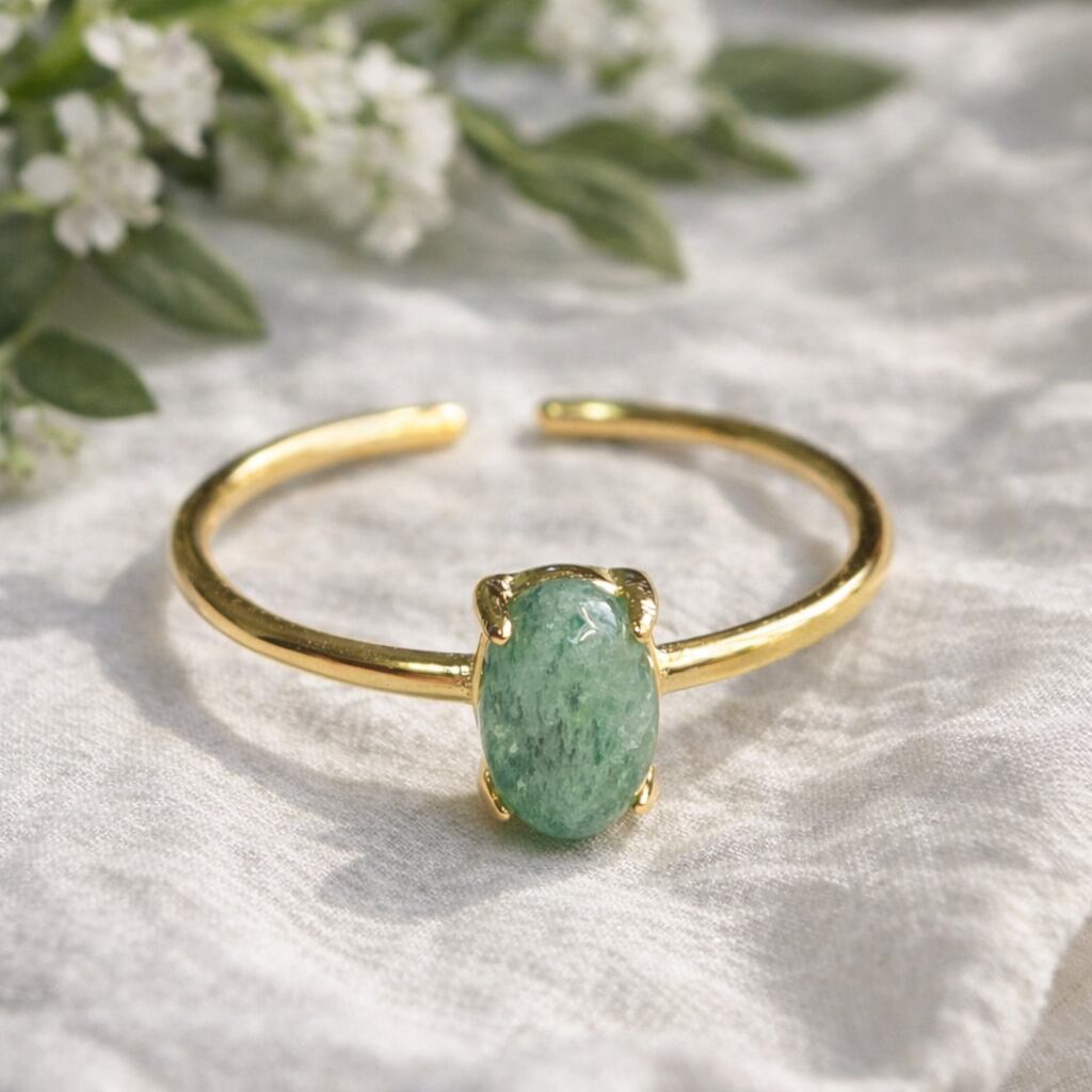 アベンチュリン リング オーバルカボション 6×4mm|フリーサイズ ゴールド シルバー925|癒しと調和の天然石