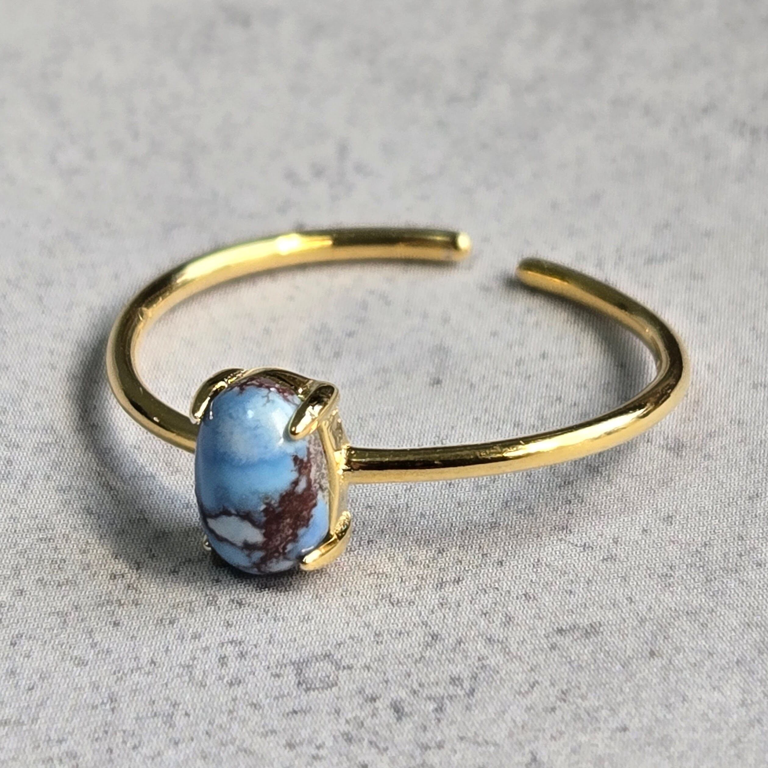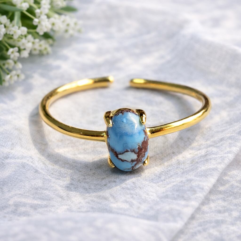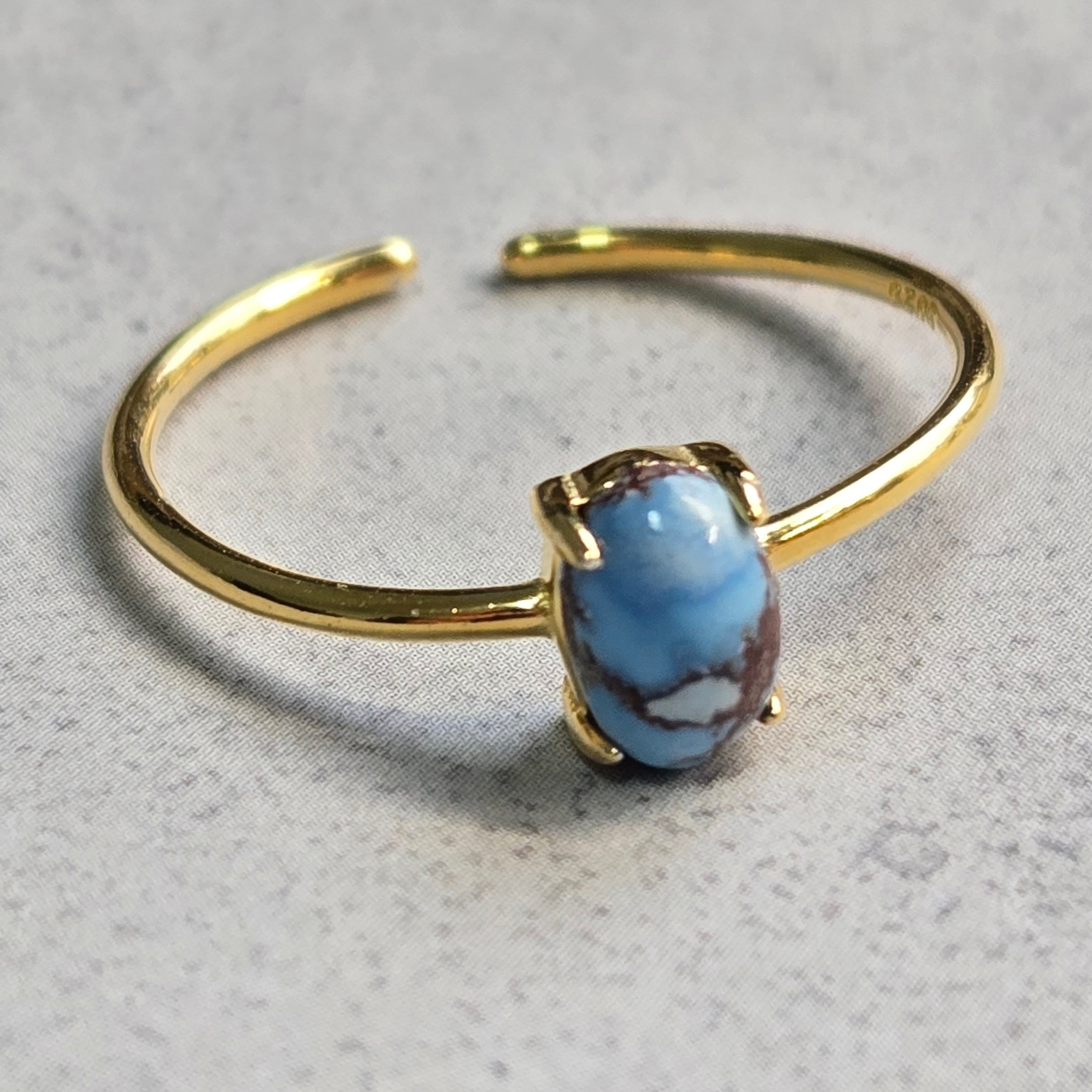 ゴールデンヒルターコイズ リング オーバルカボション 6×4mm|フリーサイズ ゴールド シルバー925|一点もの 天然