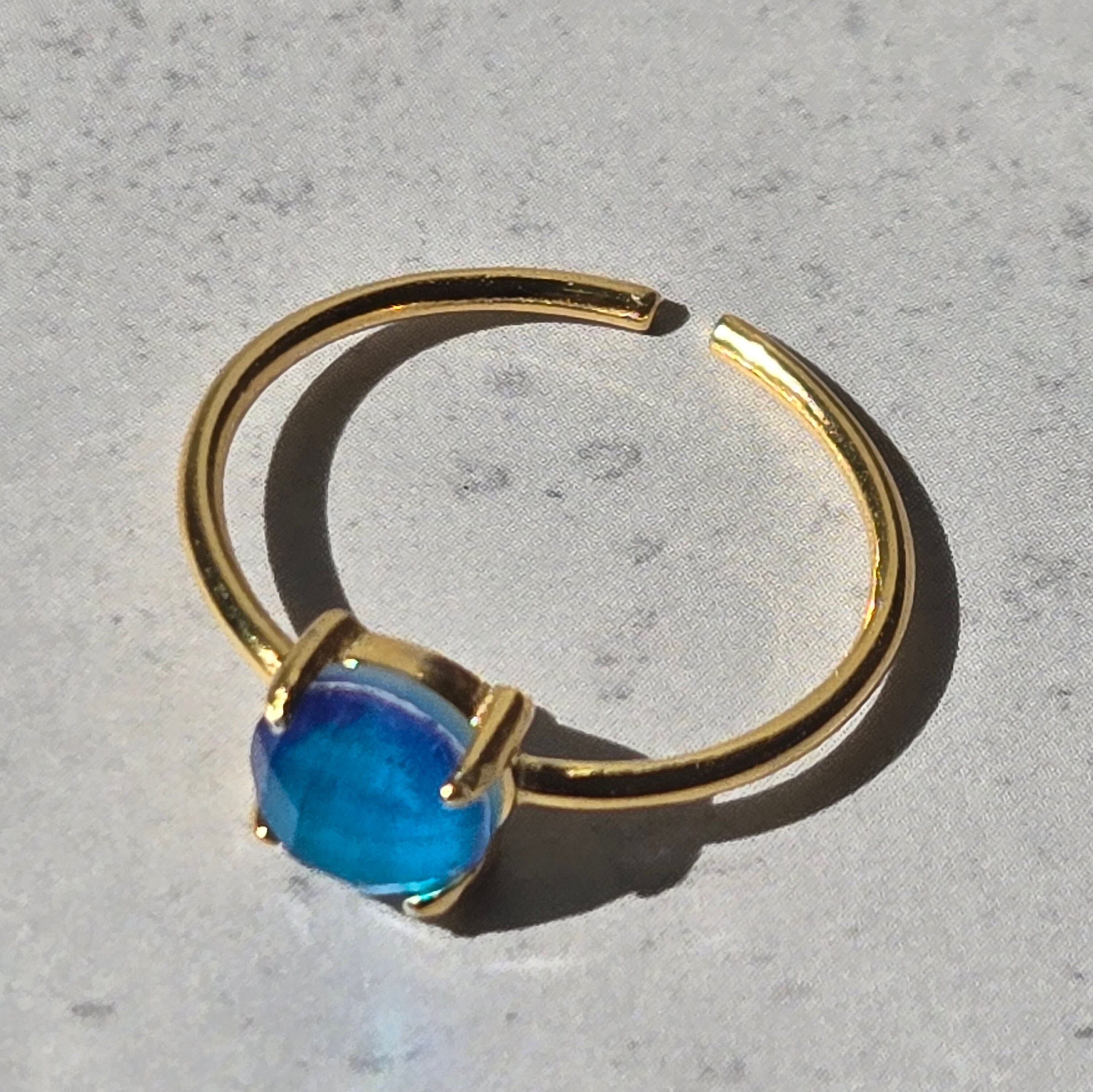 ホワイトシェル×クリスタル リング|フリーサイズ|シルバー925|天然石|ブルーグラデーション|華奢|重ね付け