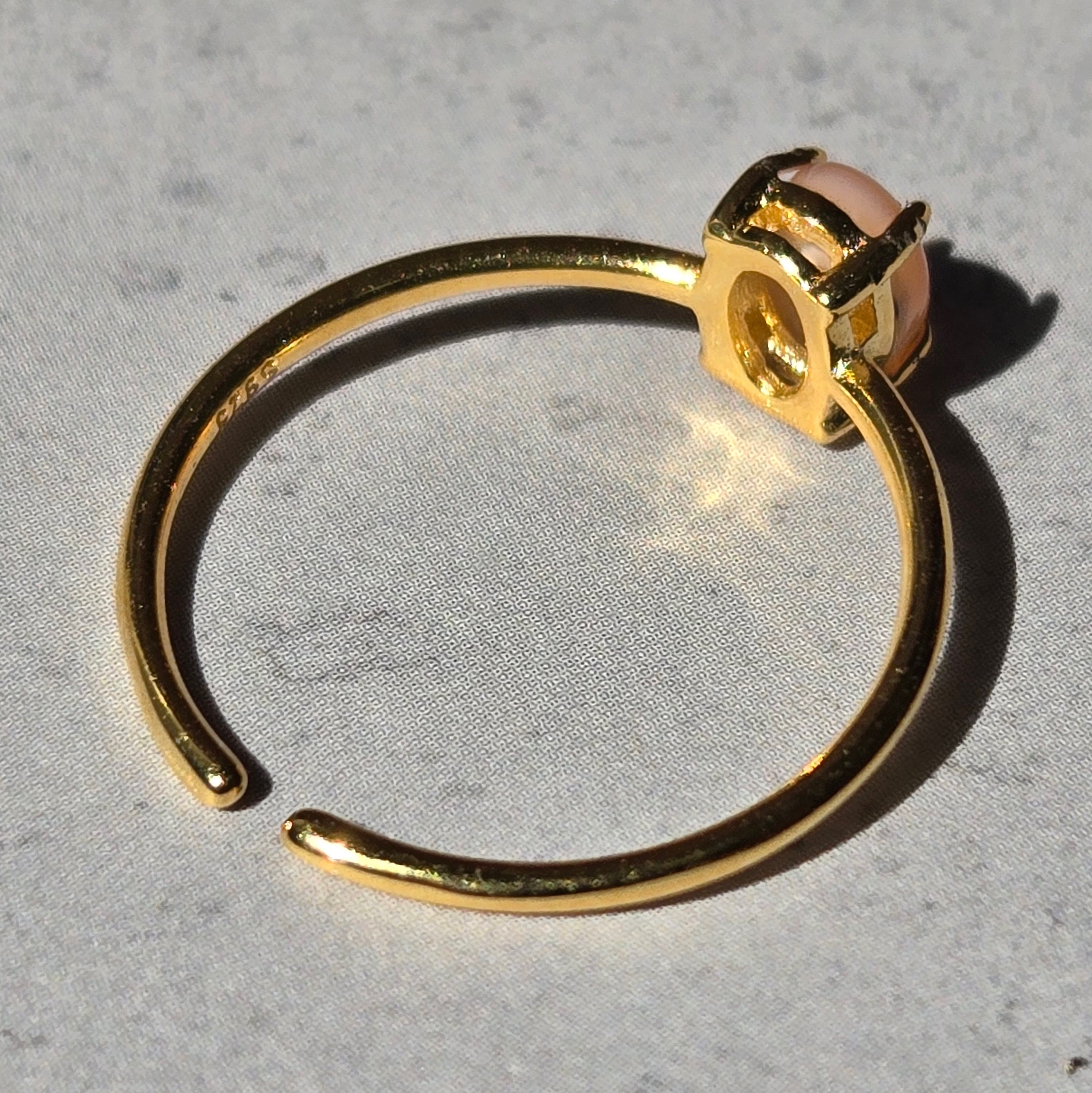 指先にやさしい彩りを添えるピンクシェルのリング。