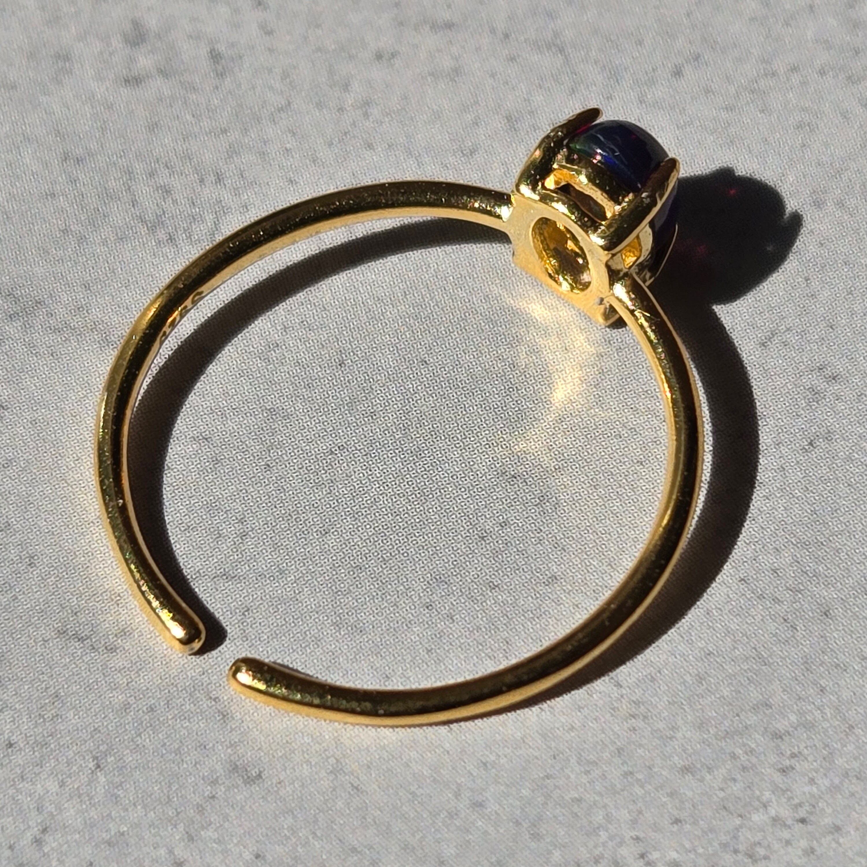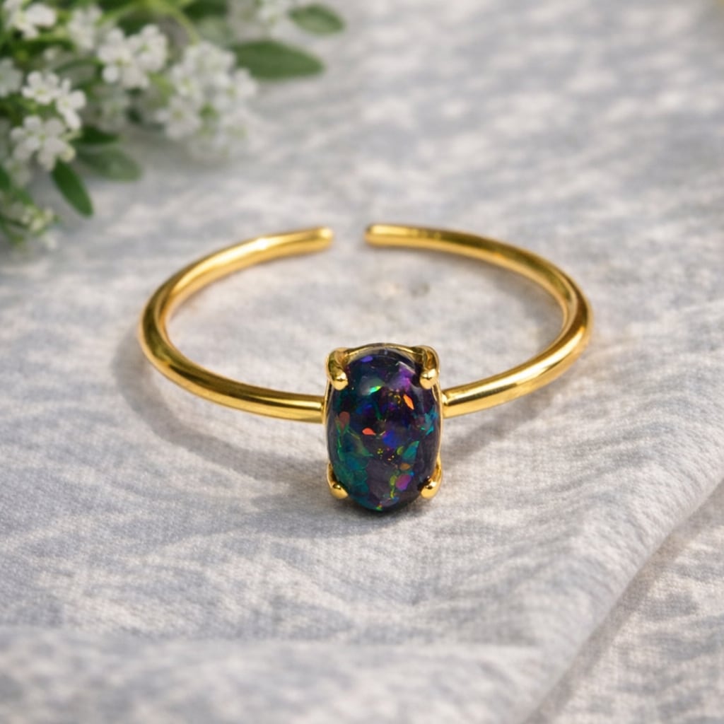 ブラックオパール リング|フリーサイズ|シルバー925|天然石|遊色効果|オーバルカボション|華奢|一点もの