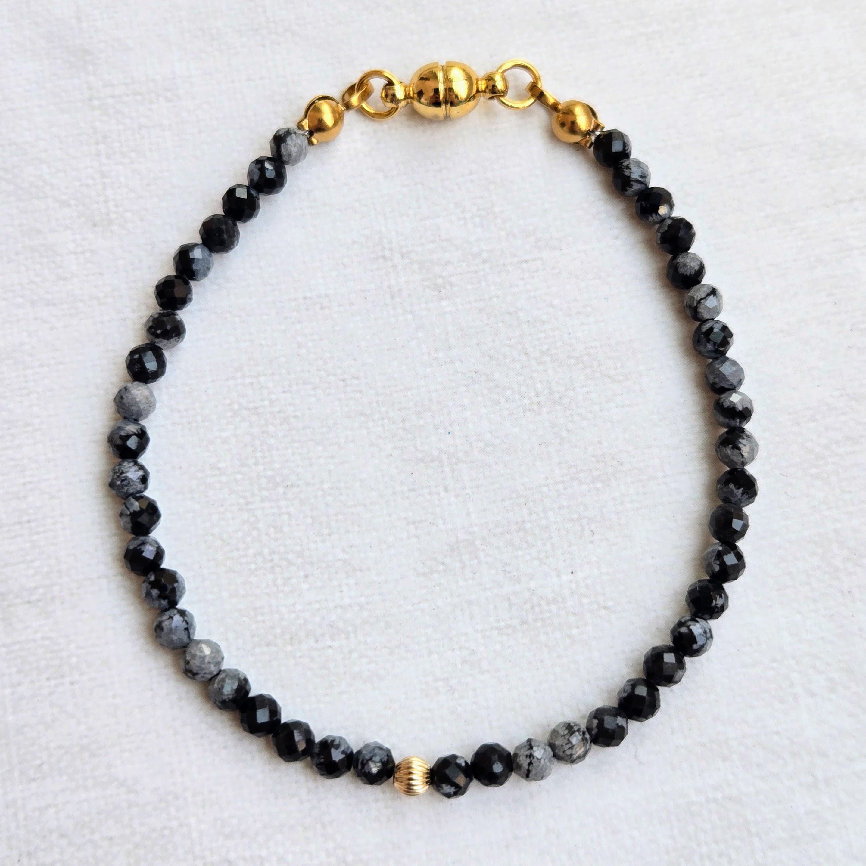 雪降る天然石*スノーフレークオブシディアンと14kgfのブレスレット マグネット留め具 金属アレルギー対応