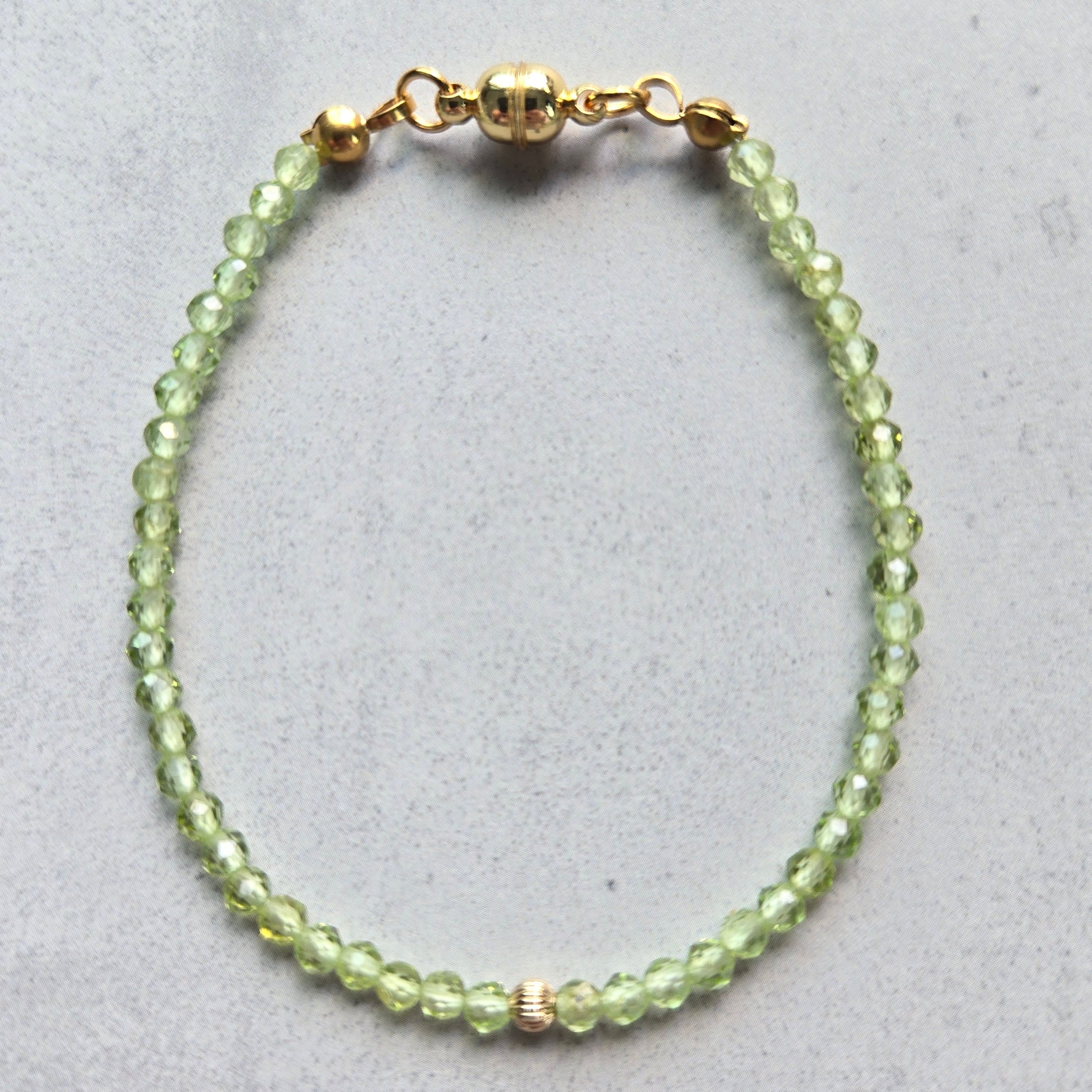【8月誕生石】ペリドットの極細3mmブレスレット 16cm 14kgfビーズ サージカルステンレス マグネット 着脱