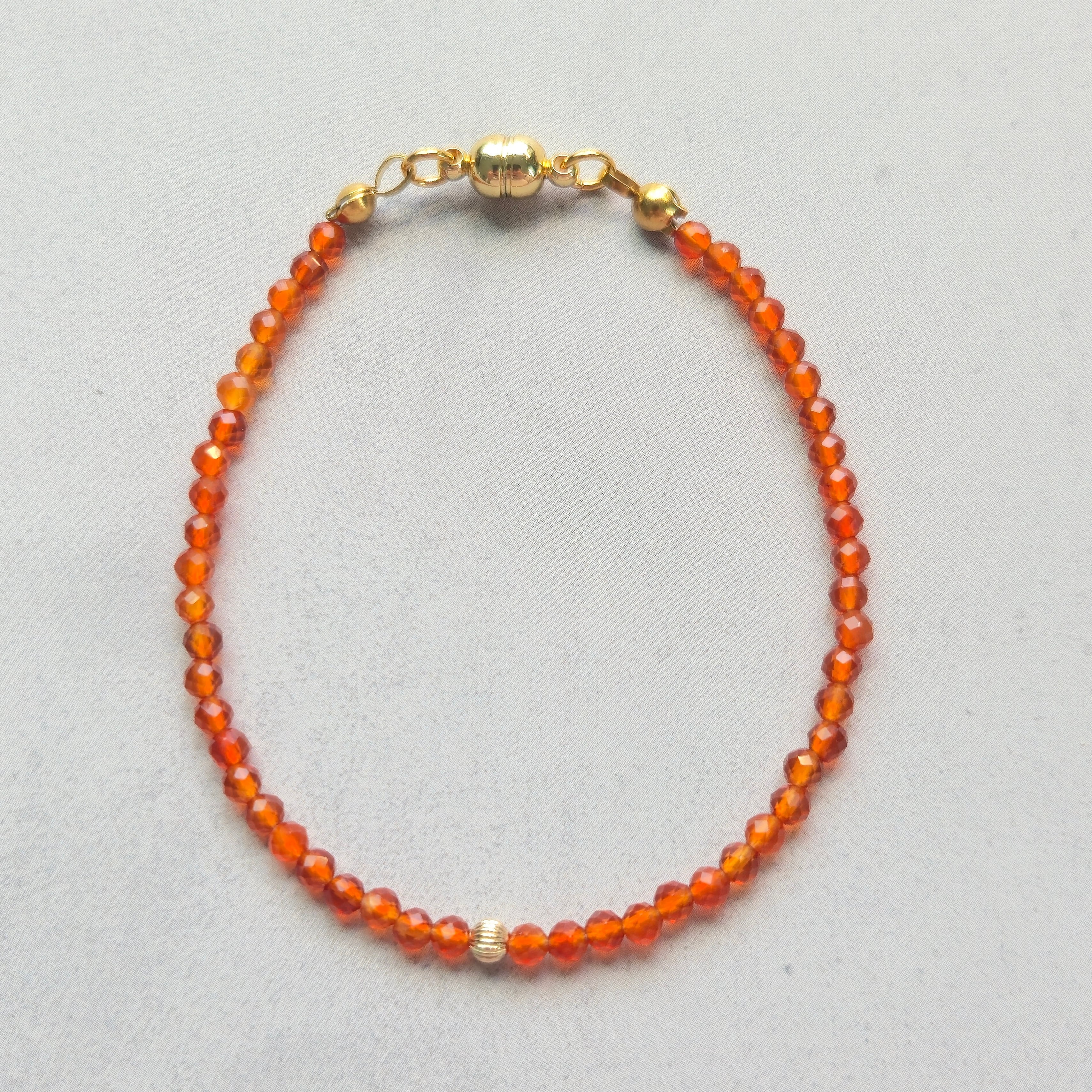 【7月誕生石】カーネリアンの極細3mmブレスレット 16cm 14kgf中央ビーズ サージカルステンレス マグネット