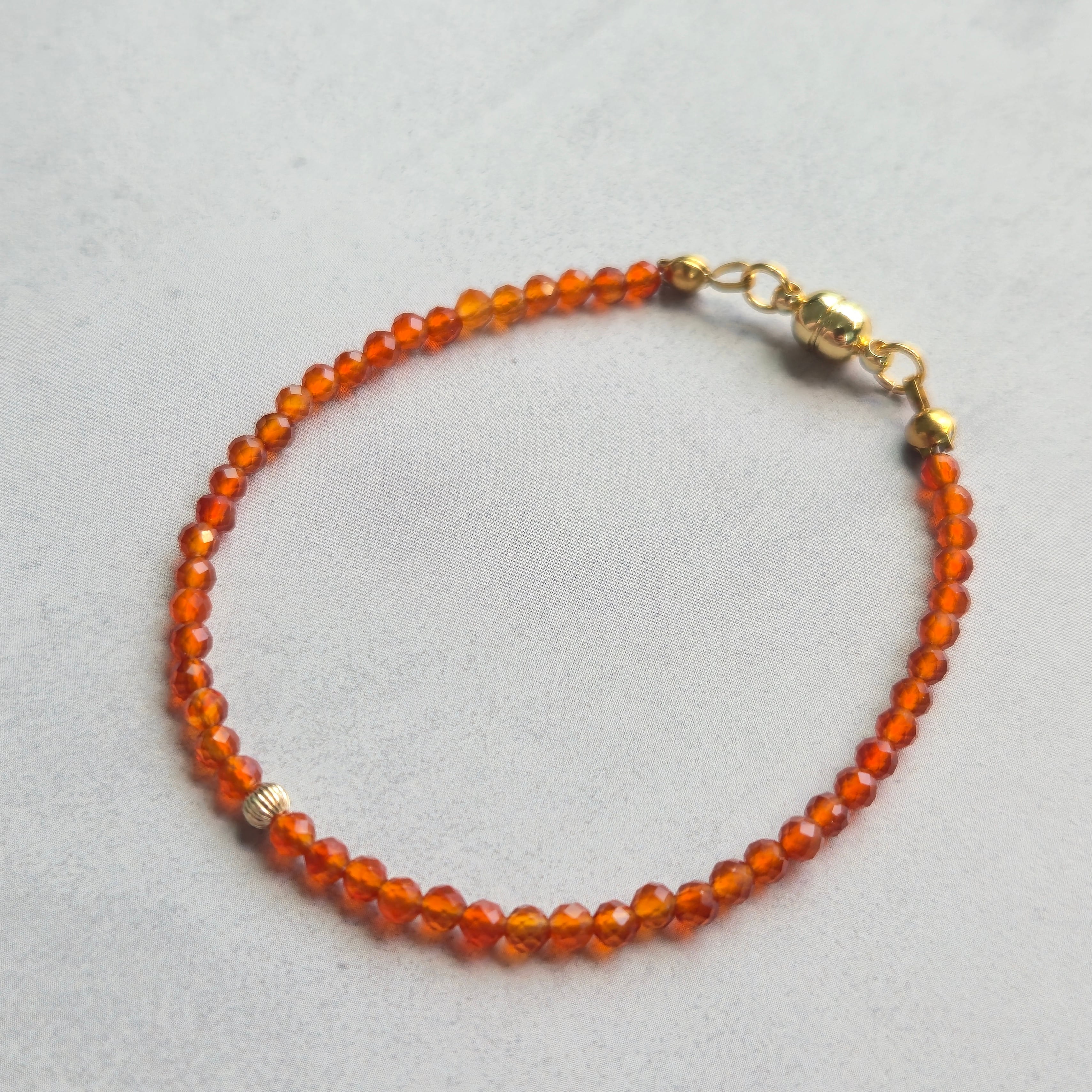 「成功・勇気・活力・連帯」を象徴する7月の誕生石、カーネリアンの華奢ブレスレットです。