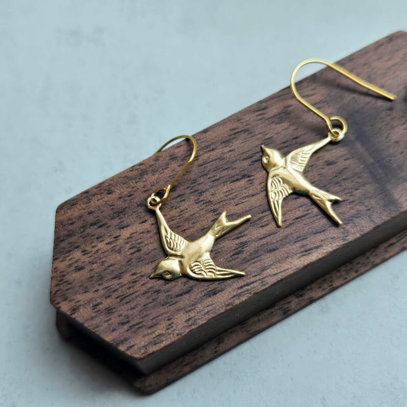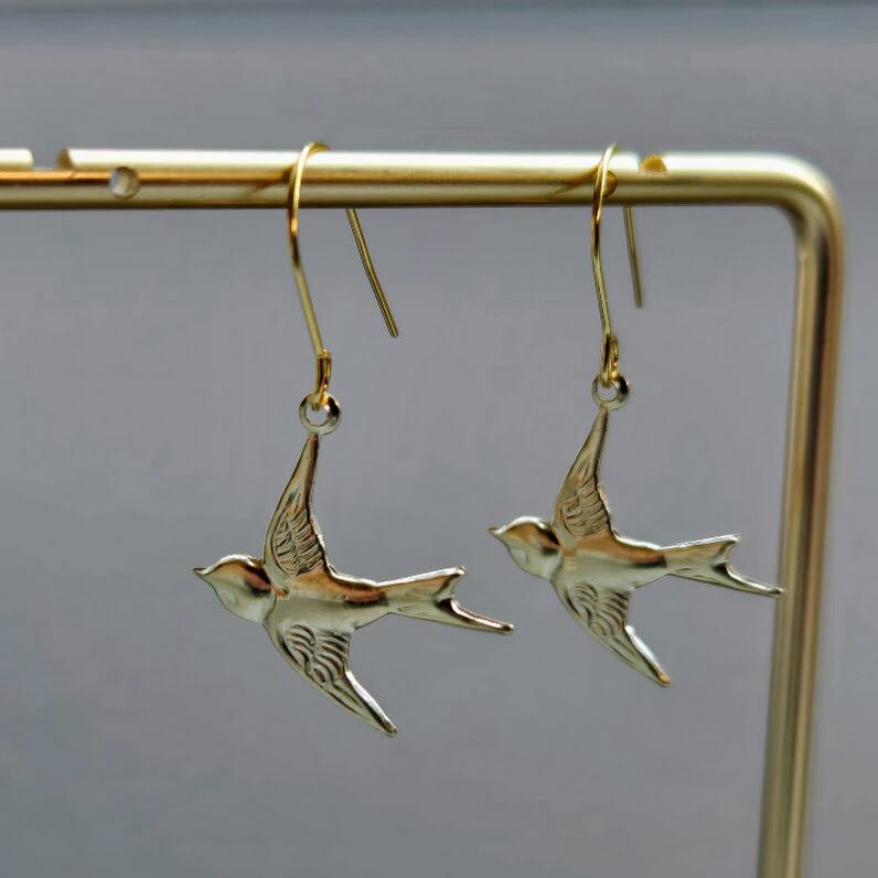 少し春を先取りして、ツバメが揺れる14kgfピアスを仕立てました。