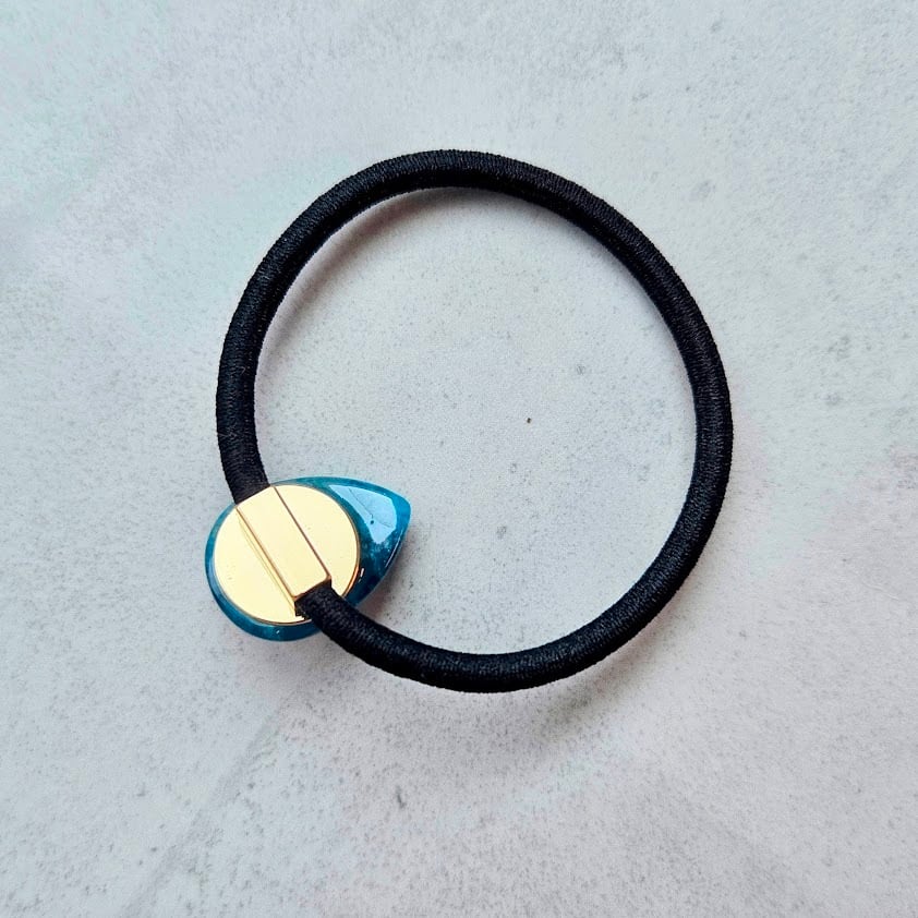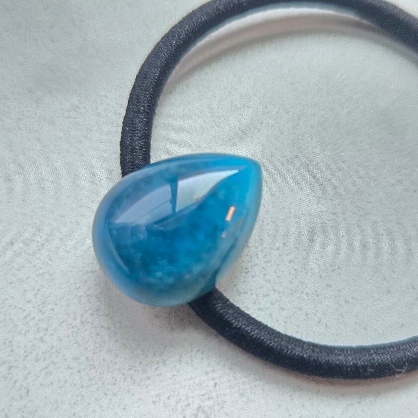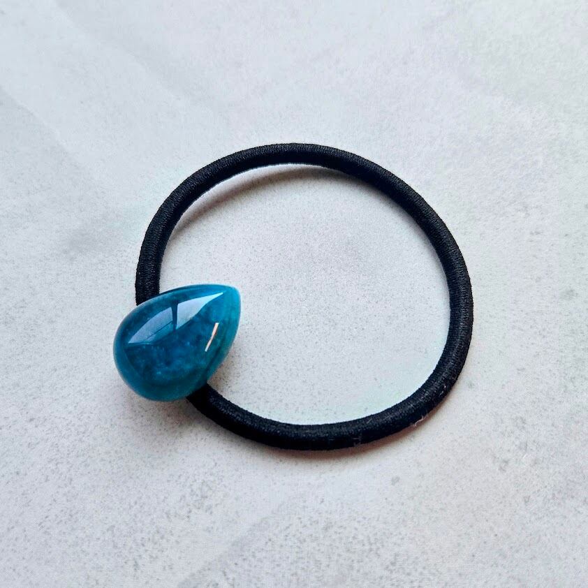 天然石の飾りがひと粒ついたこのヘアゴムは、
